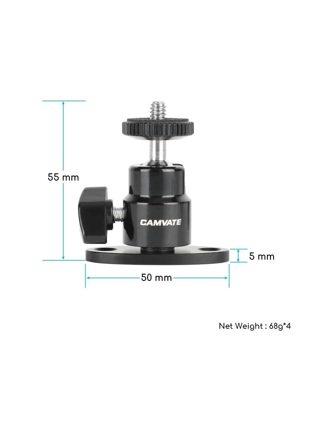 - Cabezal esférico mini con conector de tornillo 1/4"-20