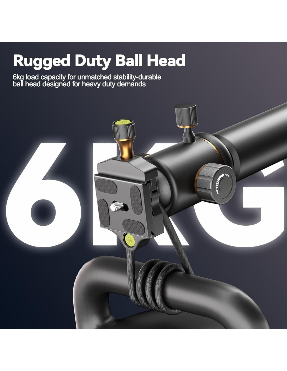 - [Diseño de Bajo Centro de Gravedad] Diseñado con un centro de gravedad más bajo que los cabezales de bola tradicionales, ofrece una estabilidad mejorada y soporta una carga máxima de 33 lb (15 kg), asegurando un montaje robusto de la cámara para un uso intensivo.