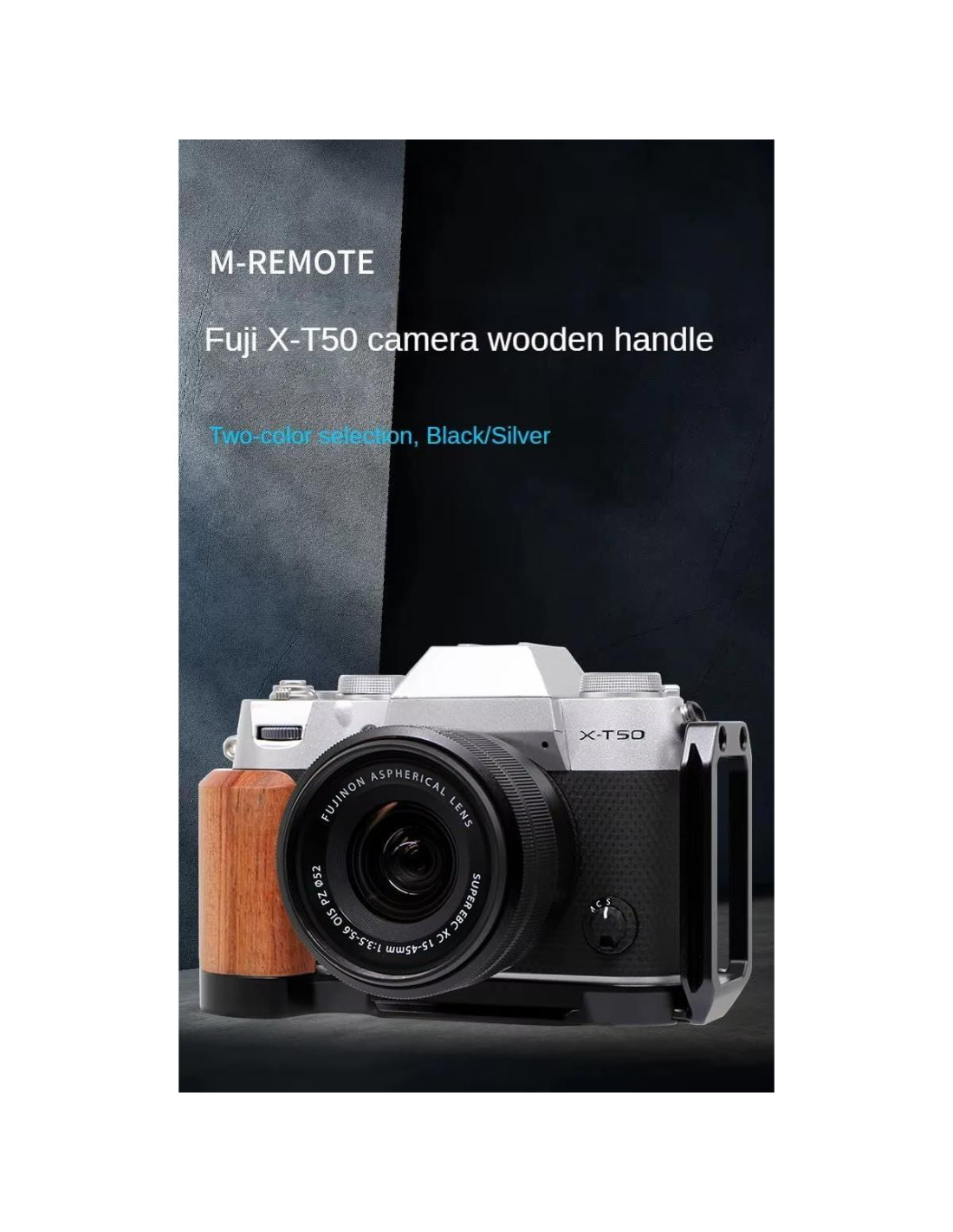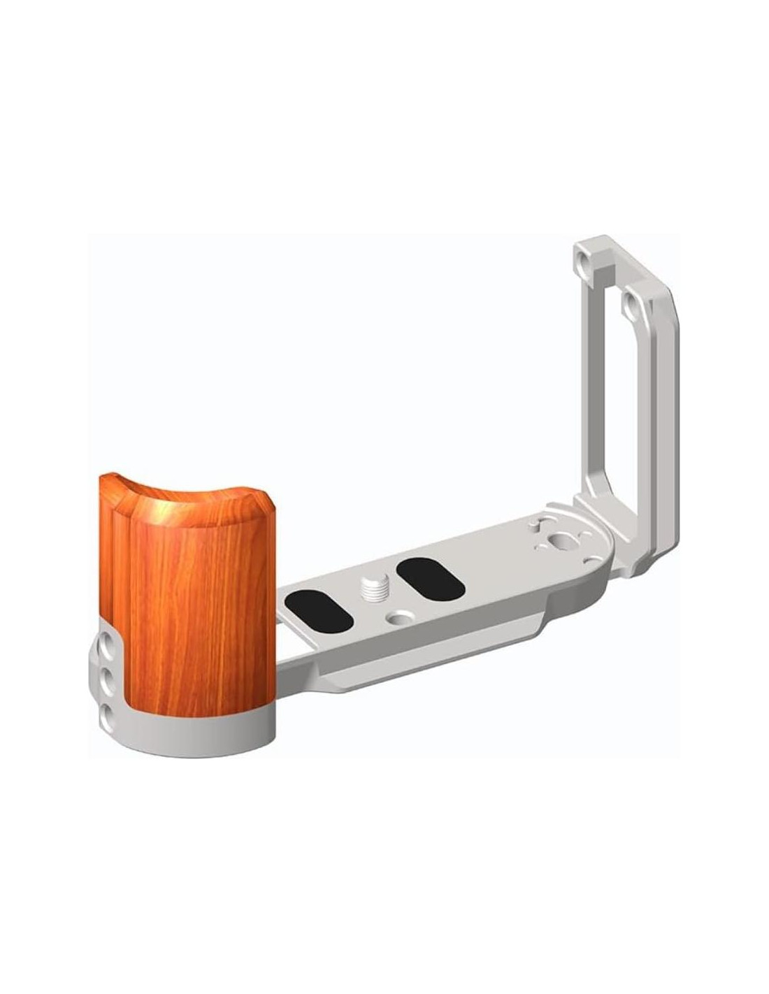 - El agarre de madera en el lado derecho aumenta el tamaño del agarre de la cámara, lo que proporciona una mejor experiencia de disparo a mano. Está diseñado para aumentar el espacio entre el agarre de madera y el objetivo para asegurar comodidad al sostener.