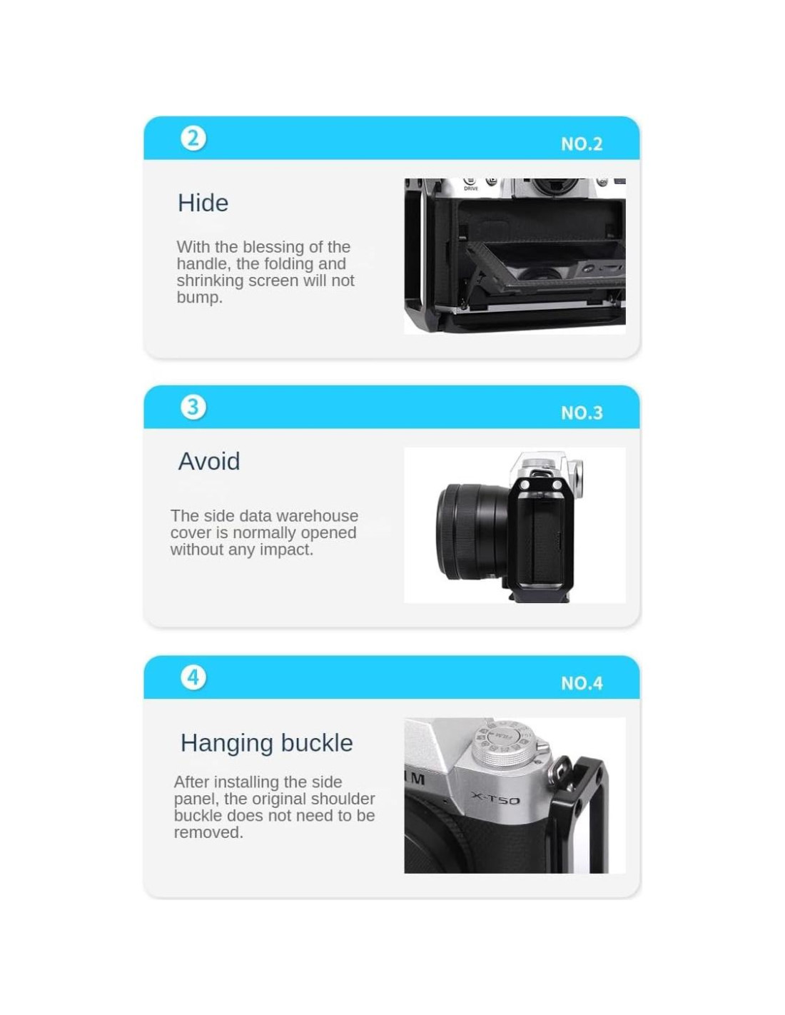 - SOLO SE ADAPTA A LA CÁMARA FUJIFILM X-T50. La jaula de conejo está distribuida con un agujero de rosca de 1/4, ranura para zapata fría.