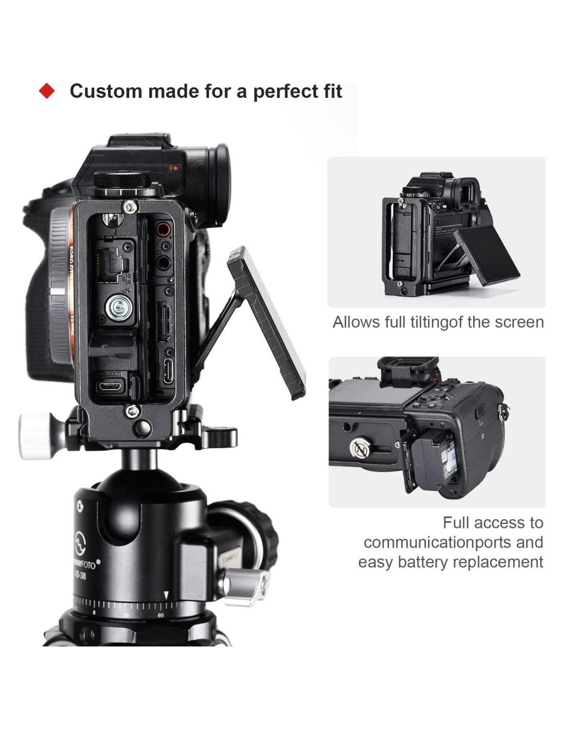 - Empuñadura QR en forma de L hecha a medida para un ajuste perfecto con ILCE-1/a1 a7S3 a7r5 a7R V A7R4 a7riv a7r4 a7rm4 A9ii, conexión sin costuras. Permite la rotación completa de la pantalla.