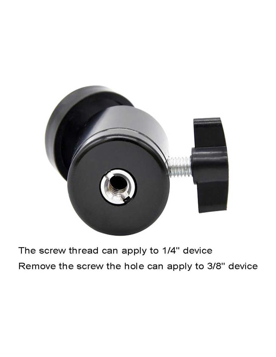 El cabezal de bola compacto Lunies está diseñado para los faros HTC VIVE, sensores Oculus Rift, videocámaras y otros dispositivos. Te ayuda a ajustar el ángulo fácilmente. - Material: Aleación de aluminio, metal y PVC - Rosca: 1/4" y 3/8" - Pan: 360 . - Diámetro: 1.14" (29mm) - Altura: 2.17" (55mm) - Peso: 2.8 onzas (80g) Paquete que incluye 2 x cabezal de bola