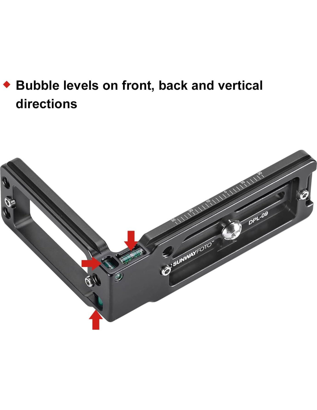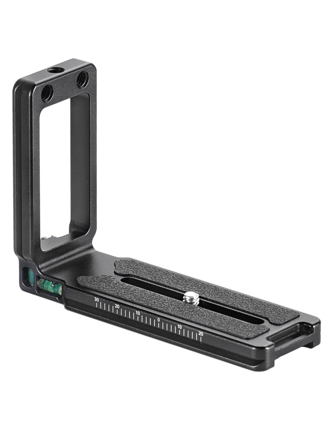 - Marca de índice grabada en el lado del soporte en L para ayudar a encontrar el centro del lente para facilitar la composición fotográfica.