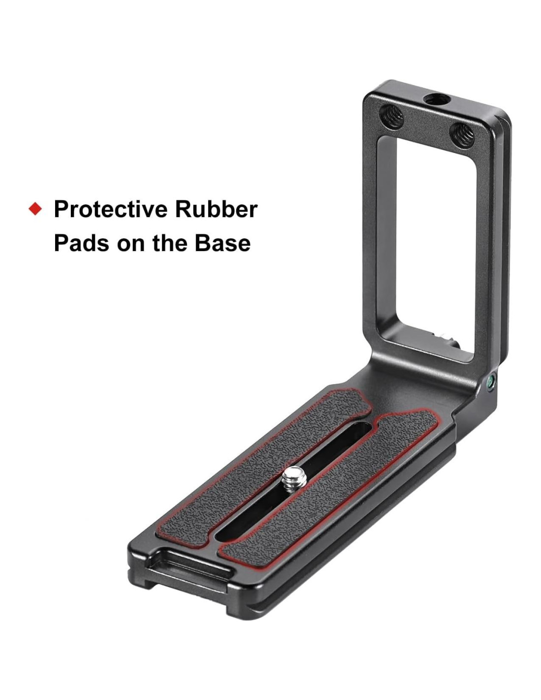 DPL-09 es un soporte en L universal diseñado específicamente para DSLR, especialmente para grabación de video. Compatible con la mayoría de las DSLR en el mercado, incluyendo Z6, Z7, Z6II, Z7II, D800, D810, D850, 5DIII, 5DIV, 5DSR, R5, R6, a1, a9, a9ii, a7RIII, a7RIV, etc. Material de aluminio de grado aeroespacial, elaborado con CNC, el acabado anodizado duro tipo III de alta calidad asegura que sea resistente a la abrasión y a la corrosión.