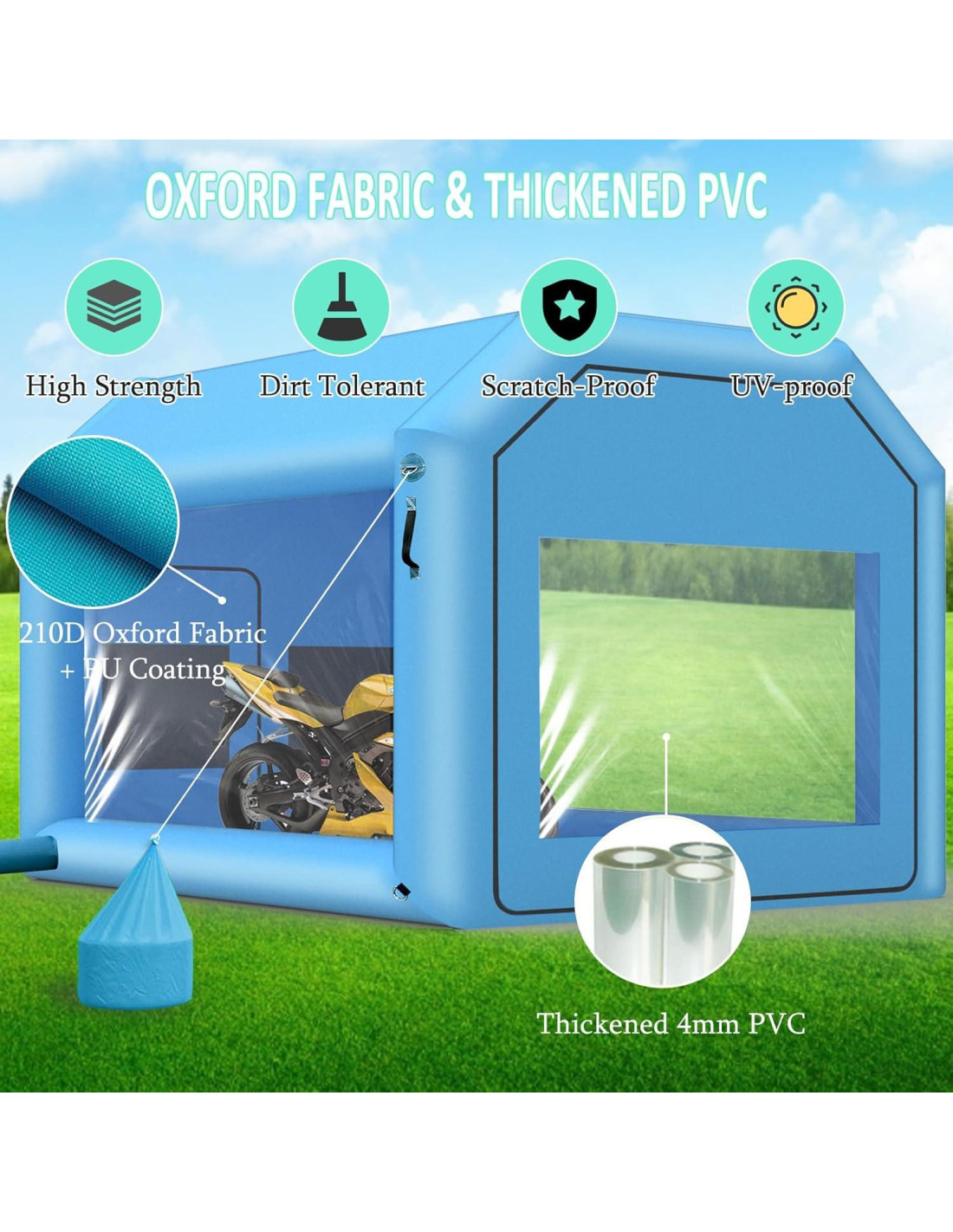 - [Sistema de Filtración Eficiente] Nuestra cabina de pintura inflable proporciona un área libre de polvo, suciedad y escombros para asegurar que puedas respirar aire fresco incluso durante el trabajo de pintura de vehículos. Las ventanas de filtro desmontables adoptan algodón filtrante de carbono, bloqueando los olores y partículas sucias de manera más efectiva, manteniendo tu espacio de trabajo impecable.