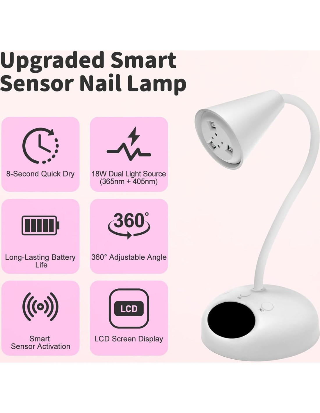 - Lámpara UV Mini Inteligente Esta lámpara para uñas está equipada con un sistema de detección inteligente y pantalla LCD. Se enciende automáticamente cuando tus dedos están a 5cm y se apaga cuando te alejas, ahorrando energía. La pantalla de cuenta regresiva precisa asegura un tiempo de curado controlado científicamente para cada sesión de uñas, entregando resultados de calidad de salón sin esfuerzo.