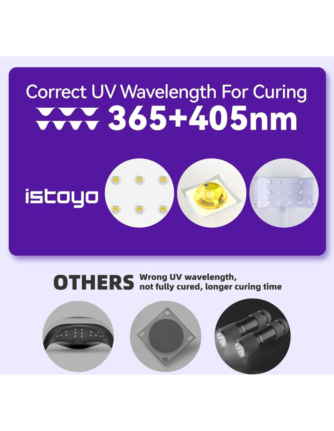 - Curado Doble Lado Juntos: La luz UV de ISTOYO para curado de resina adopta un diseño de doble cara. Puede curar en la parte superior e inferior de manera uniforme al mismo tiempo. Reduce significativamente el tiempo de curado 2x y proporciona una excelente experiencia de elaboración con resina.