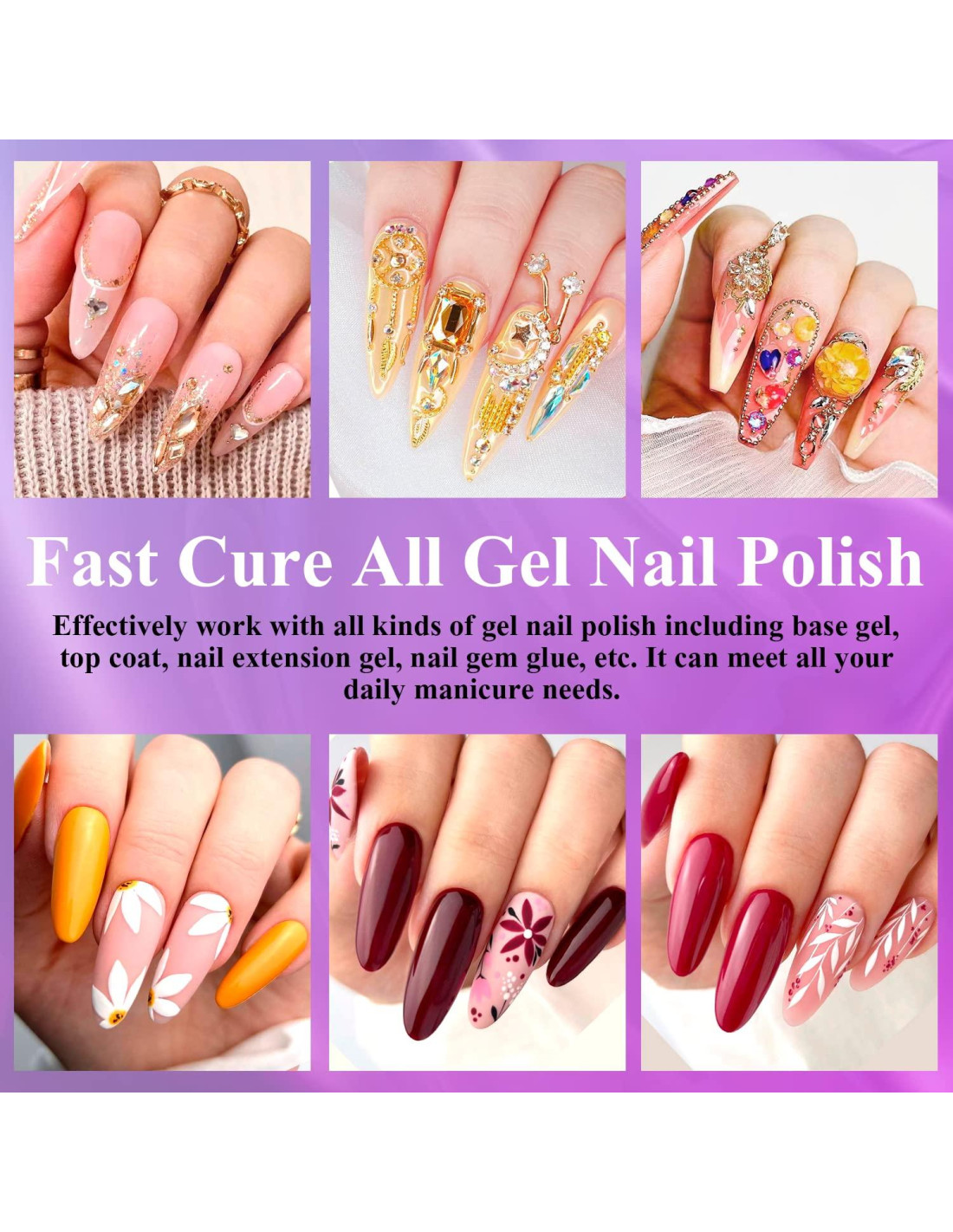 - Diseño Portátil para Dedo Individual: Se puede usar cuando el dispositivo está encendido. El tiempo predeterminado es de 60S, adecuado para uso de dedo individual. Soporta todos los tipos de gel UV y esmalte de uñas en gel LED, incluyendo pegamento UV para uñas, gel constructor, gel escultural para uñas, pegamento para gemas y gel de uñas LED, etc., lo que puede ayudar a que tu esmalte de uñas se seque rápidamente.