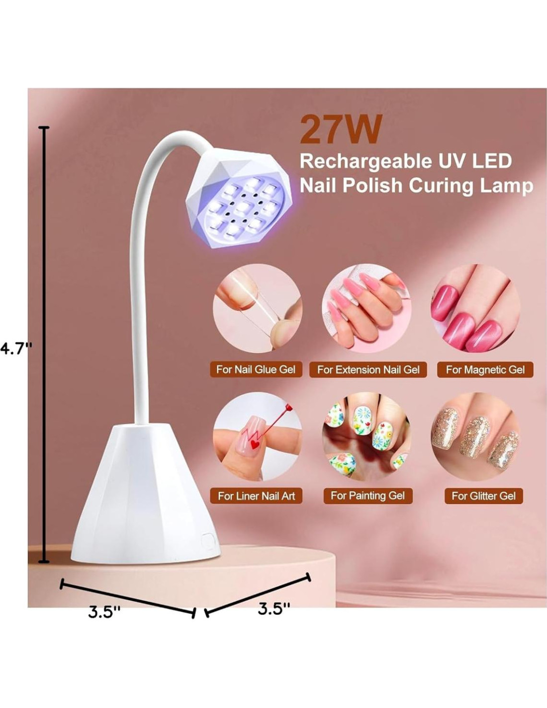 - Diseño Abierto y Tubo de Silicona Rotatable 360: Esta lámpara UV de cuello de cisne para uñas gel x secador de uñas USB tiene un diseño de espacio de operación completamente abierto, libera tus manos, facilita la operación de tu arte de uñas DIY y el curado del esmalte de uñas al mismo tiempo, más conveniente para pegar puntas de uñas, uñas postizas y decoraciones de uñas, está diseñada con manguera de cuello de cisne rotatable de 360 grados, flexible y se puede ajustar en cualquier ángulo. Fácil de almacenar y llevar de viaje