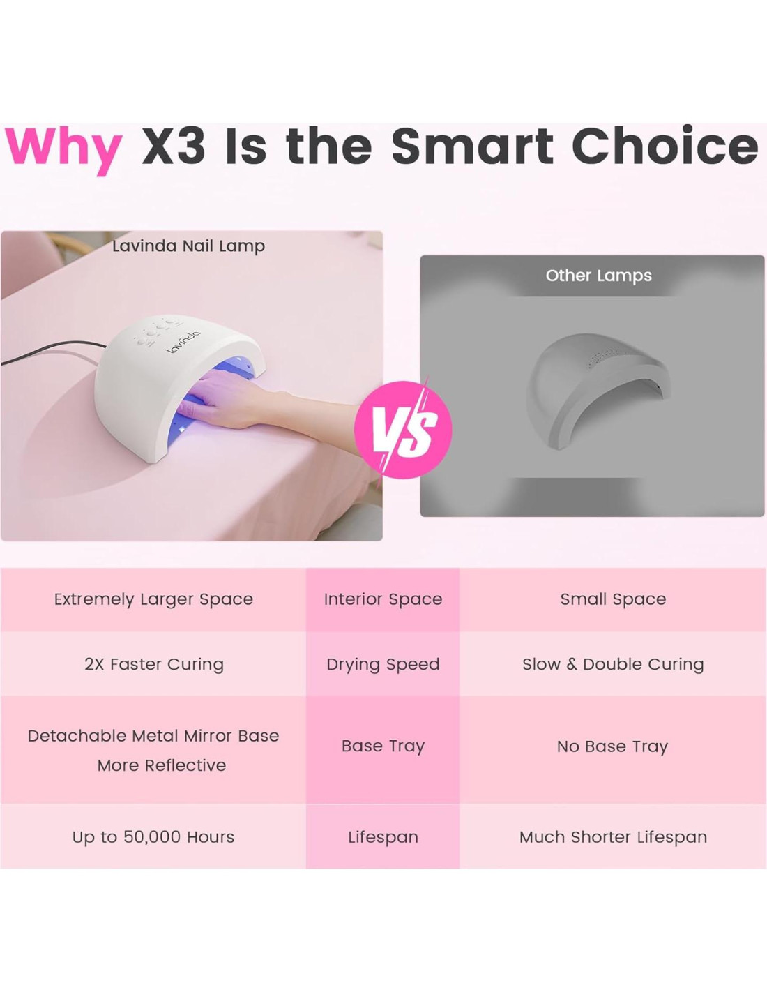 - [Fuente de luz dual y curado rápido] La lámpara de uñas UV LED Lavinda de 48W cuenta con 33 perlas de alta eficiencia (365nm + 405nm), ofreciendo un secado 2X más rápido mientras protege tus ojos y piel. La suave fuente de luz dual asegura un curado uniforme sin oscurecer las manos ni deslumbrar.