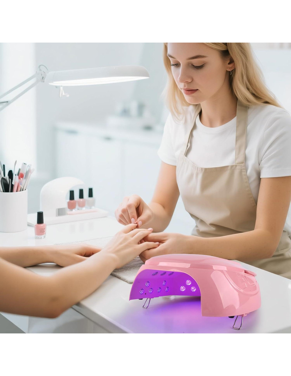 - Curado potente y rápido: Esta lámpara UV está diseñada con 45 perlas de lámpara y fuente de luz dual (365nm + 395nm), asegurando un curado rápido y efectivo. El interior de espejo mantiene la distribución uniforme de la luz, proporcionando un curado uniforme sin esquinas muertas.