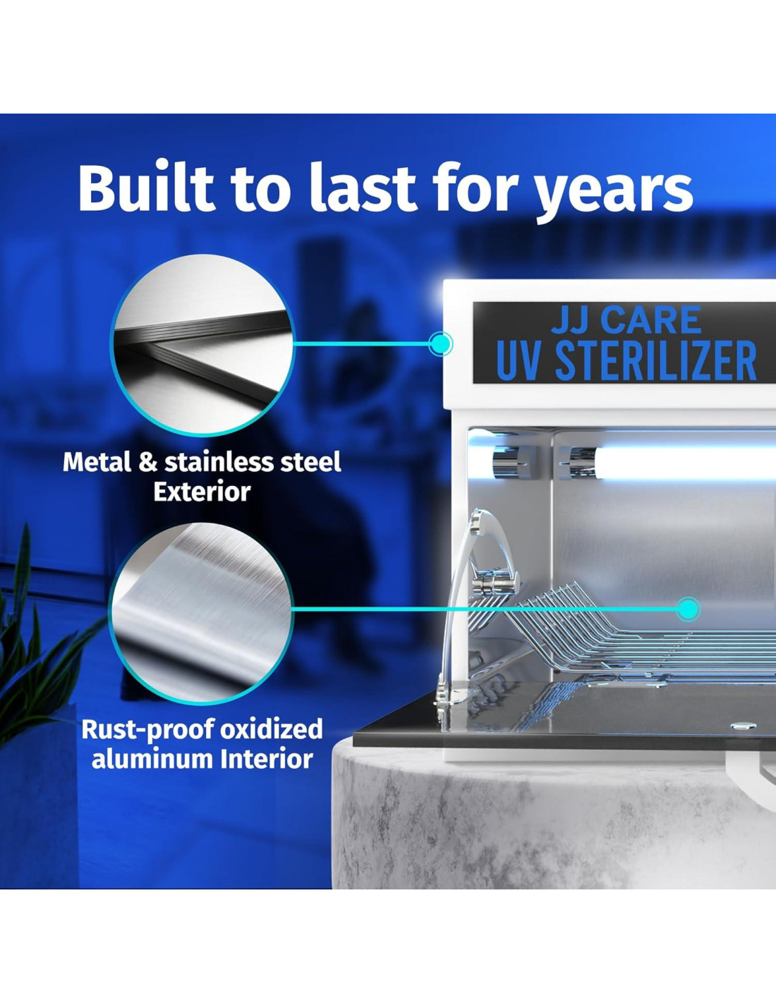 - Uso Multiusos - El gabinete desinfectante de herramientas JJ CARE es perfecto tanto para uso comercial como en casa. Ideal para salones, spas, barberías, estudios de tatuajes y clínicas, también es perfecto para desinfectar artículos personales como juegos de manicura, utensilios de cocina, teléfonos inteligentes, juguetes para niños, productos de plástico y más. ¡Una solución versátil y conveniente para todas tus necesidades de desinfección!
