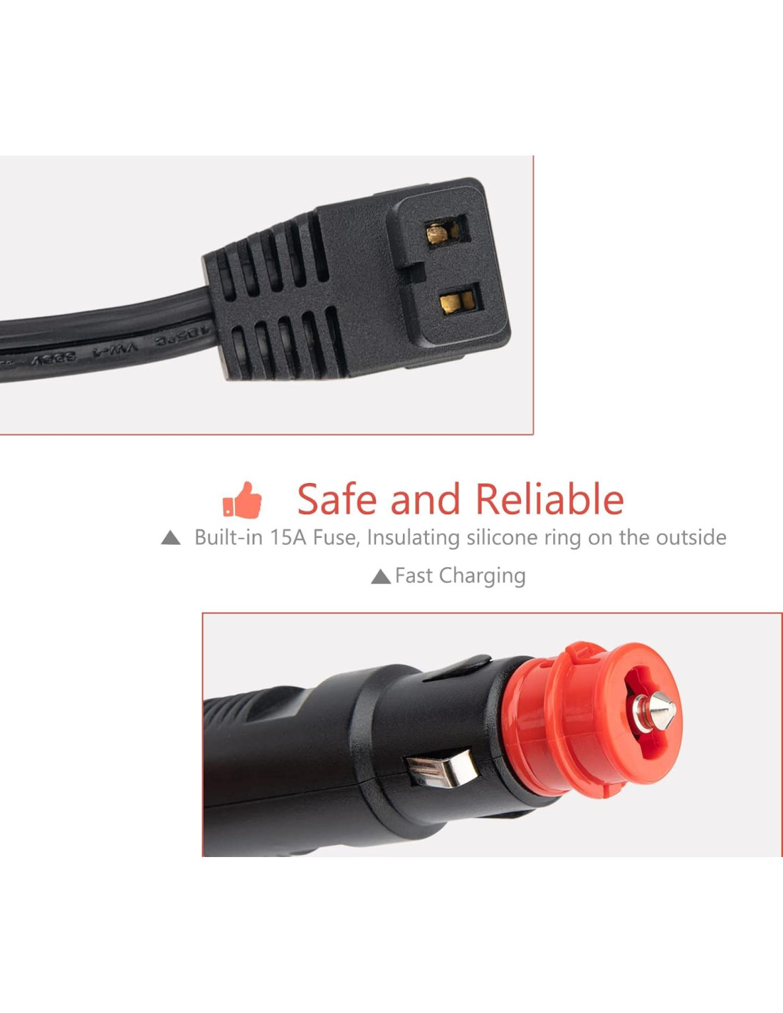- Alta calidad: material de alta calidad asegura transmisión en una situación estable. La tecnología de carga exclusiva utilizada en este cable de alimentación de CC para congelador de coche proporciona la velocidad de carga más rápida. Diseño exquisito, ahorro de espacio, instalación simple con enchufe de mechero macho para congelador de coche