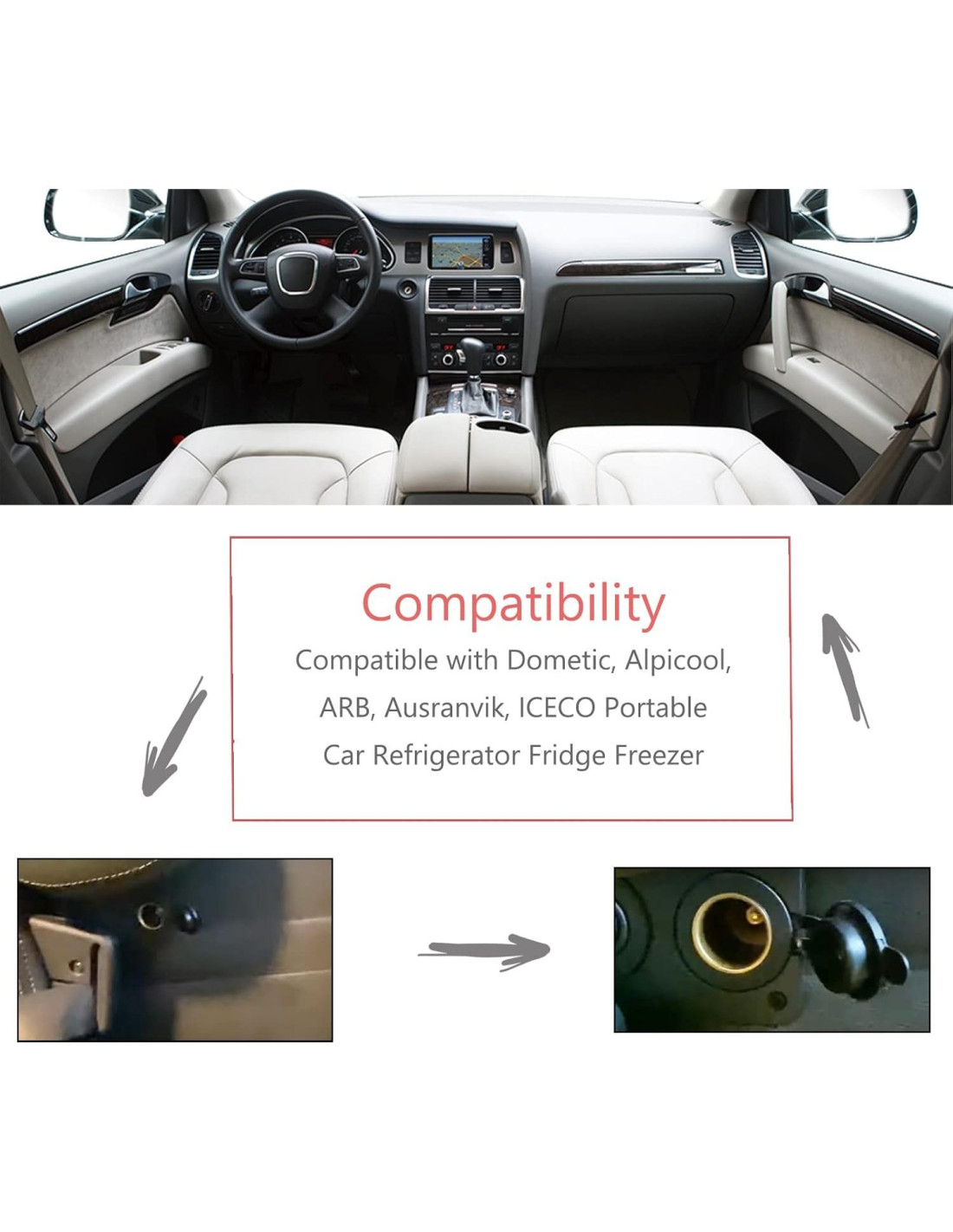 - Amplia aplicación: cable de alimentación de CC para refrigerador de coche portátil de 12V/24V, aplicable a las marcas Dometic, Alpicool, ARB, ICECO, Setpower, Aspenora, JoyTutus. Cable de 16AWG para enfriador de 12V y enfriador eléctrico para coche, RV, furgoneta