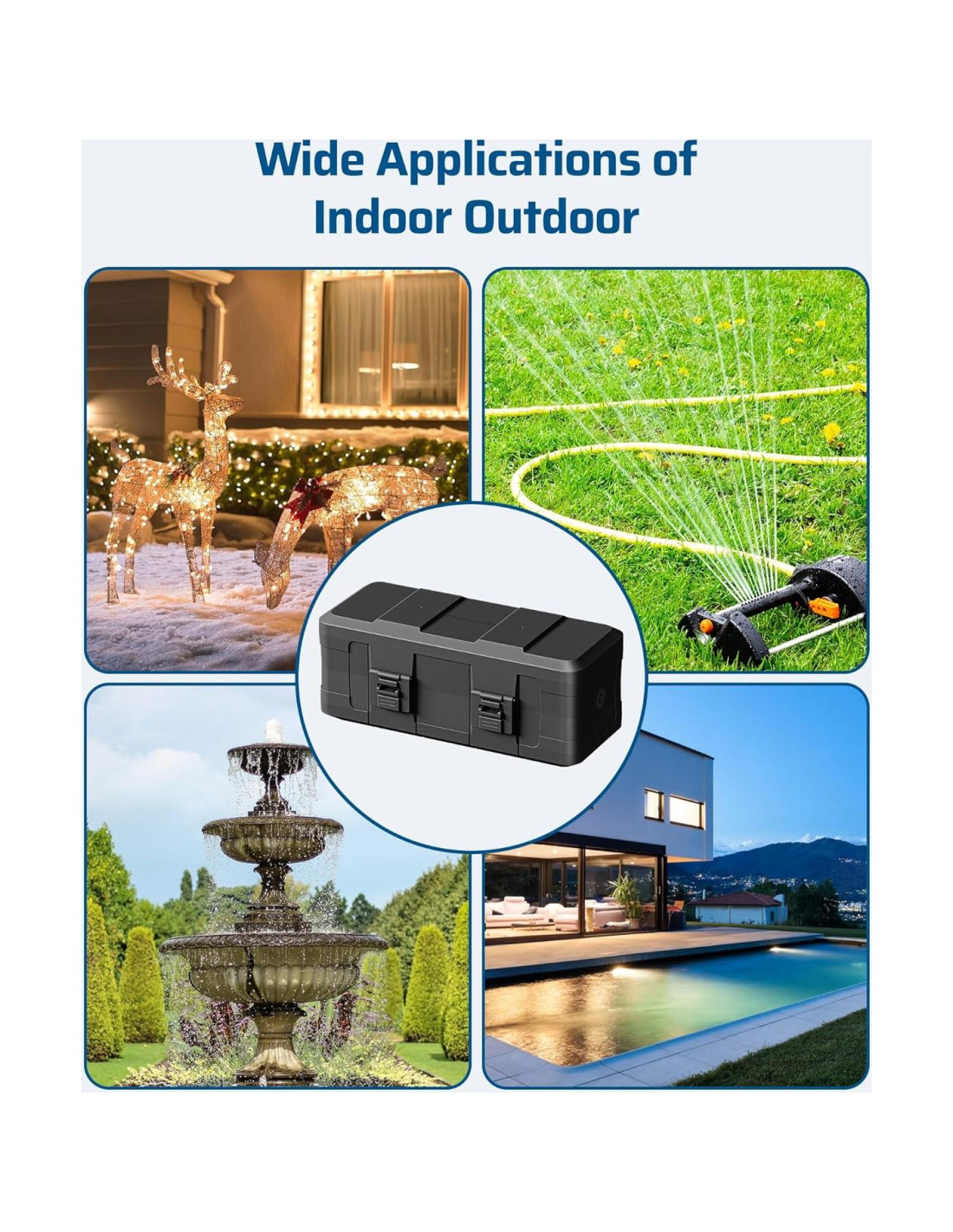 - [Fácil de Usar y Amplia Aplicación] Solo coloca la conexión en la caja eléctrica impermeable y sujeta el cable con las pinzas, luego puedes disfrutar usándolo; perfecto para una amplia gama de entornos al aire libre, incluyendo jardín delantero/trasero, jardín, césped, fuente, estanque, piscina.