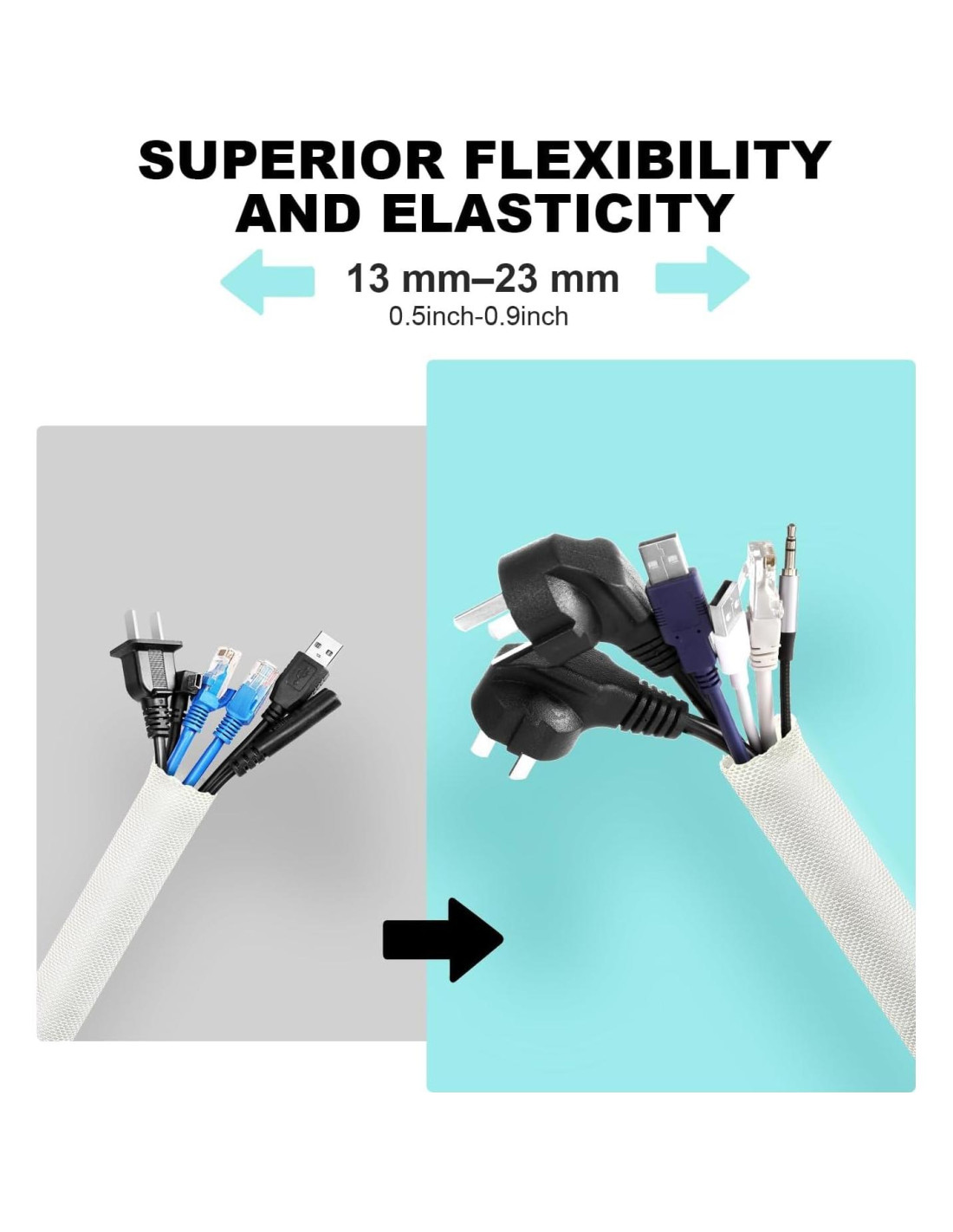 - Cubierta de Cables para Muchos Cables Fácil de Cortar El tubo de cable se puede cortar fácilmente con tijeras. Longitud: 10 pies (3.05 metros). Diámetro: 0.5-0.9 pulgadas (1.27-2.29 cm). Pueden sostener diferentes tamaños de cables para ti. Es especialmente adecuada para esquinas (se recomienda quemar la posición de corte después de cortar para evitar que se deshilache).