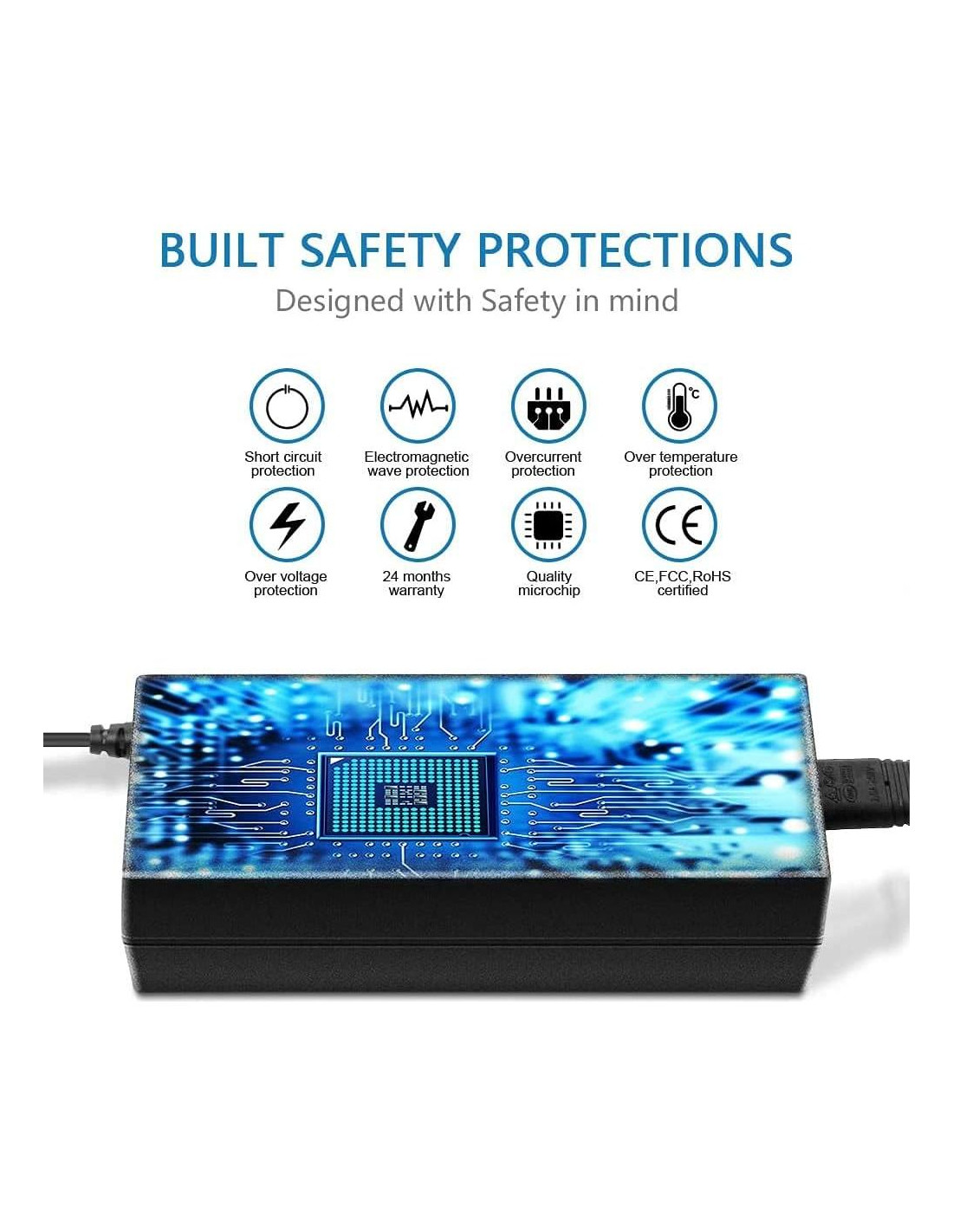 Especificaciones del producto: Tipo de enchufe: clavija US Voltaje de entrada: CA 100-240VAC Uso mundial Rango de frecuencia de entrada: 50-60Hz Tenga en cuenta: Este artículo es un adaptador de energía de reemplazo, no original/genuino. Por favor, tenga en cuenta que la potencia total del dispositivo no debe exceder la potencia máxima (mostrada en la etiqueta del adaptador) de este adaptador Y sugerimos que se reduzca un 10%-20% al usarlo para prevenir sobrecalentamiento Advertencias: No abra ni modifique la fuente de alimentación/cable de alimentación/cable de energía Mantenga a los niños alejados de la fuente de energía de alto voltaje Úselo bajo la guía de un electricista profesional Cualquier abuso o uso indebido anulará la garantía