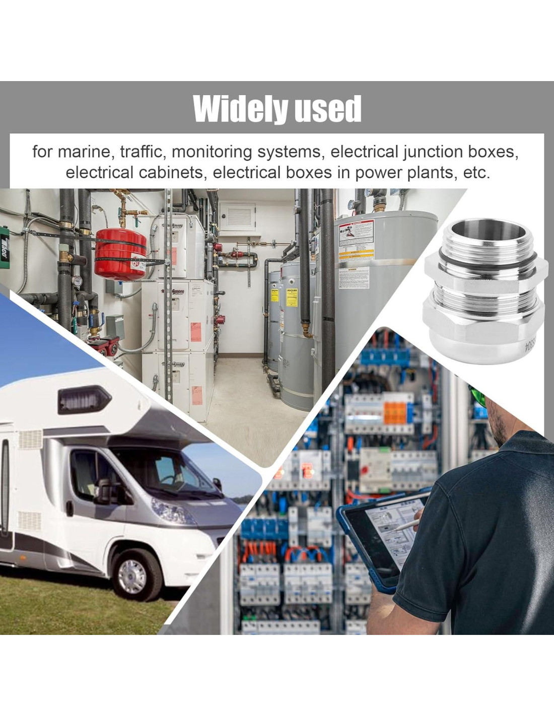 - Paso de Cable Impermeable: Este conector impermeable de acero inoxidable tiene una clasificación IP68 para resistir lluvia, polvo, nieve, aceite, rayos UV y otros desafíos ambientales.