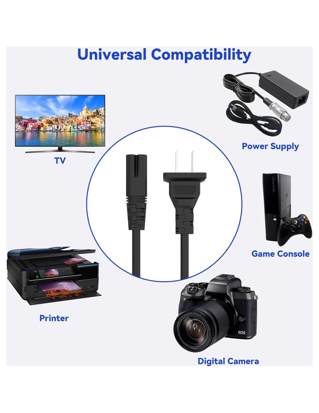 XMHEIRD 5ft Cable de Alimentación AC Para JVC DR-MV150B VHS VCR DVD PLAYER COMBO Cable de 2 Patas
