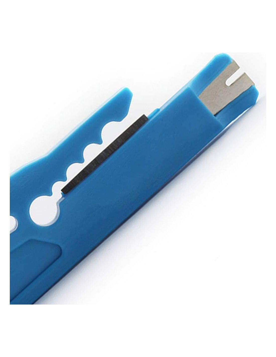 Descripción: Material: acero al carbono y plástico. Diámetro de desforrado: 5-6.2mm. Aplicación: UTP / STP. Línea telefónica, cable de red, línea de monitoreo, además de desforrar también se puede usar para cable. Cuchilla afilada, desforra fácilmente. Tamaño pequeño, fácil de llevar. La hoja de metal de la tarjeta es muy fuerte, sin fenómeno de depresión. Este desforrador es fácil y seguro de usar, golpea cables en conectores modulares. Desforra cables de datos y cables trenzados UTP/STP y termina cables en bloques 110. Fácil y seguro de usar, golpea cables en conectores modulares. Ideal para cable de datos CAT-5, CAT-5e y CAT-6. Color: Azul Paquete Incluido: 3 x Cortador Desforrador de Cables