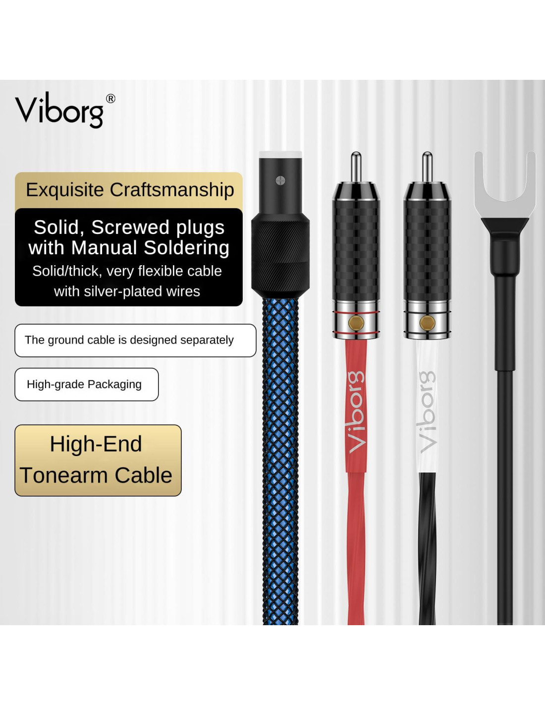 - [Conectores RCA bañados en rodio] El cable de tono para tocadiscos de Viborg con conectores RCA de cobre bañados en rodio, anti-oxidación, transmisión de alta velocidad, disfruta de la calidad de sonido original como si estuvieras allí.