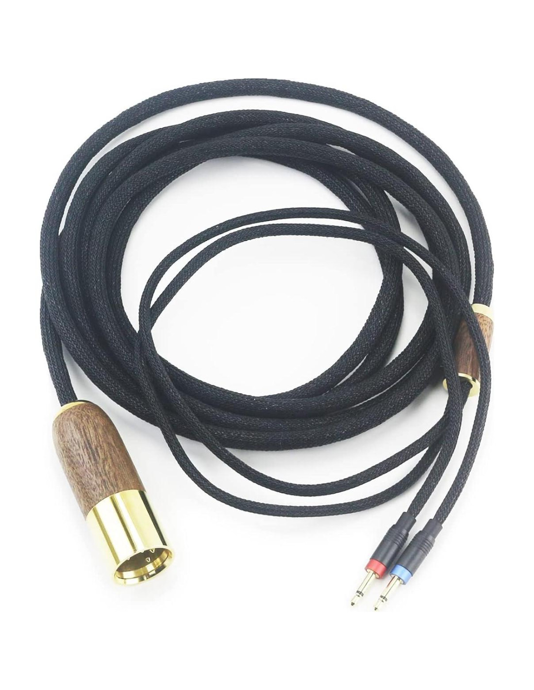 - Conector: XLR balanceado macho de 4 pines a dual macho de 2.5mm, las carcasas de los conectores están hechas de madera de nogal / Madera Sólida - Nogal + Baño de Oro en Latón.
