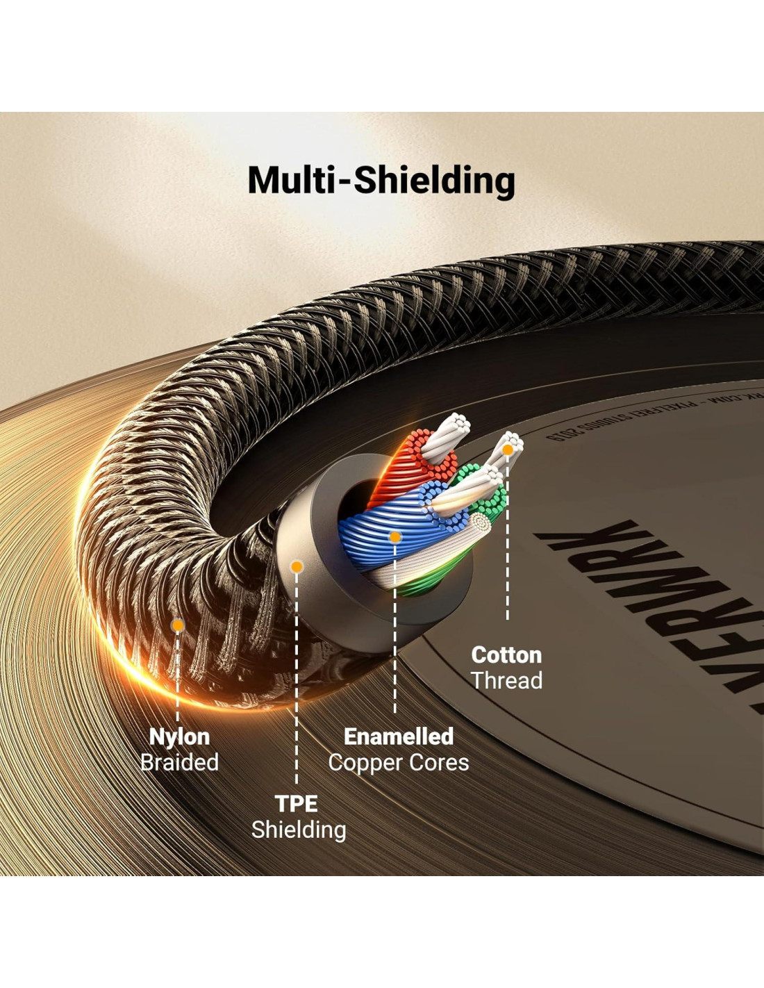 - Cable de alto rendimiento: La carcasa de este cable de extensión para auriculares está hecha de material metálico premium, duradero y elegante. El exterior trenzado del extensor de 3.5mm es bastante robusto y flexible, haciendo que los cables no se enreden y sean duraderos