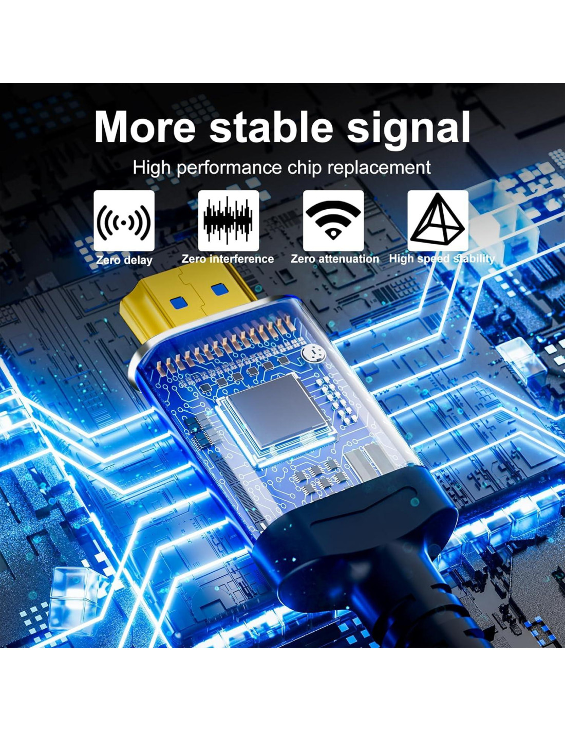 - [Blindaje contra interferencias electromagnéticas] El cable de fibra óptica HDMI de 30.48 m incorpora un chipset alemán, asegurando compatibilidad con varios dispositivos y conversión precisa entre señales ópticas y eléctricas. En comparación con las señales digitales transmitidas a través de cables de cobre, es inmune a la interferencia electromagnética.