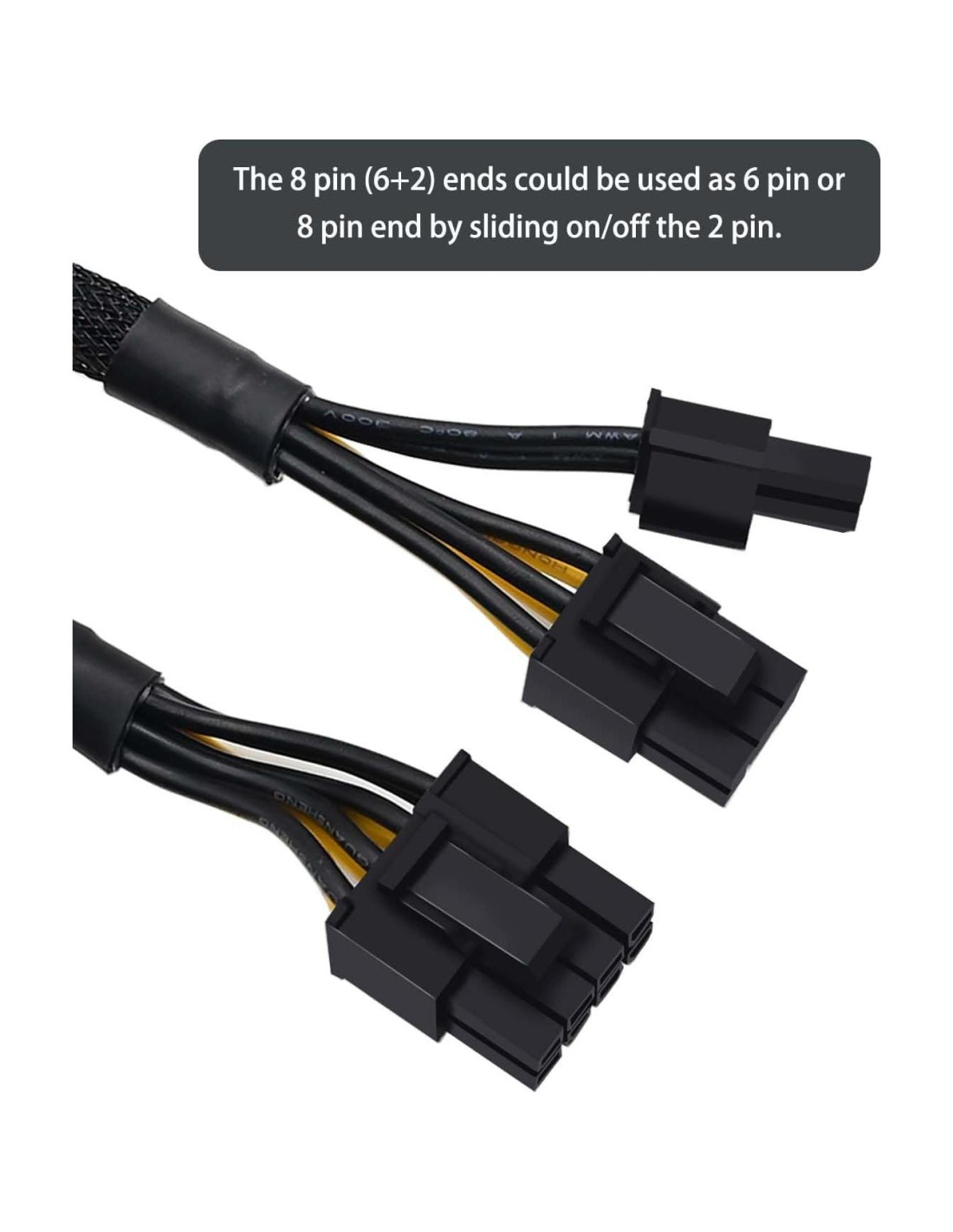 - Compatibilidad Compatible con varias GPU como: ASUS, EVGA, GIGABYTE, Sapphire, MAXSUN, GALAXY, Zotac, etc. (Los extremos de 8 pines (6+2) se pueden usar como extremo de 6 pines o 8 pines deslizando el pin de 2 hacia arriba/abajo);