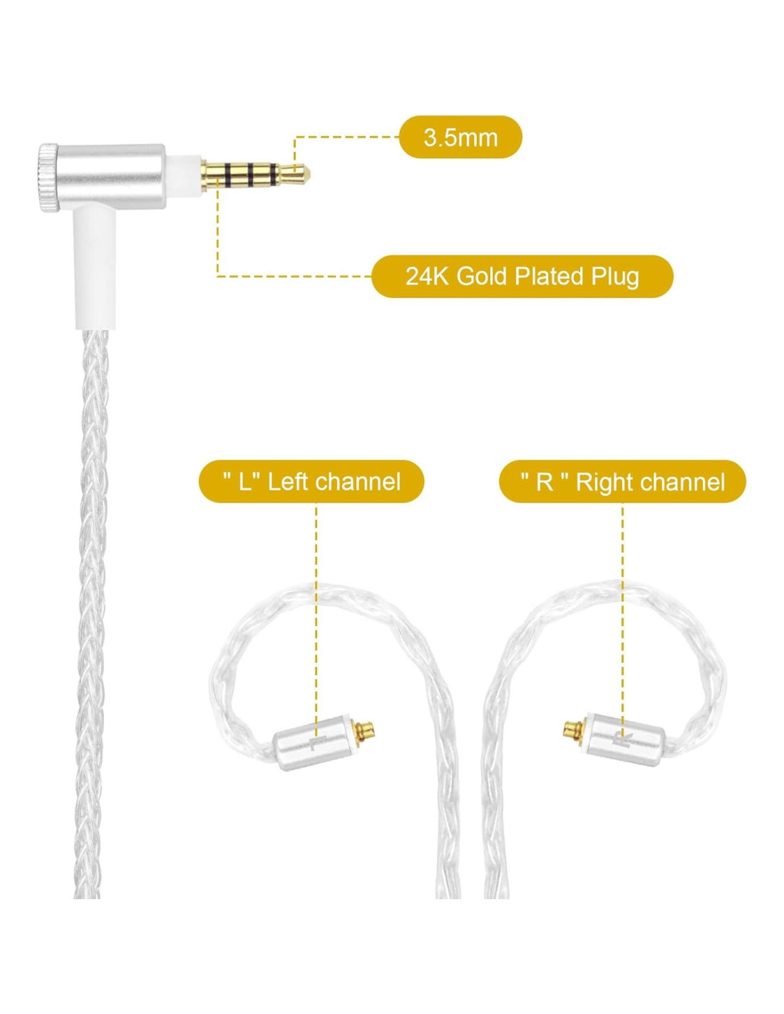 Cuando tu cable de audio, cable de carga USB o cable de cámara esté dañado o perdido, te proporcionaremos los cables de reemplazo premium. Ofrecemos una amplia gama de cables auxiliares de audio, cables de extensión para auriculares, cables de cámara y cables USB. Con el concepto de 'usuario primero', combinamos innovación con conveniencia para proporcionar accesorios de cables de datos 3C más rápidos para usuarios globales. Cable MMCX de 8 núcleos, cable de audio de plata mejorado para auriculares. Cable de auriculares de 8 núcleos: puedes reemplazar fácilmente el cable de actualización. Proporciona más opciones para tus auriculares hi-fi. La calidad de sonido se mejora, teniendo una mejor experiencia sonora. Especificación: Material: cable de alambre de plata. Color: Blanco. Tamaño: 1.2 m (4 FT). Tipo de conector: MMCX ~ 3.5mm. El paquete incluye: 1 x cable de reemplazo para auriculares MMCX Shure. Botón de aumentar: presiona para aumentar el volumen, presiona para reproducir la siguiente música. Botón central: botón de 'reproducir/pausar/contestar'. Botón de disminuir: presiona para disminuir el volumen, presiona para reproducir la música anterior. Compatible con la mayoría de los teléfonos inteligentes con conector de audio estándar de 3.5mm, como teléfonos Android, laptops, tabletas, MP3, MP4 y otros reproductores de música de audio. Adecuado para adaptar la mayoría de los auriculares con conector MMCX, compatible con Shure SE846 SE215 SE535 SE425 SE315 SE535LTD LZ A4 A5 UE900 MAGAOSI K5 auriculares, etc.