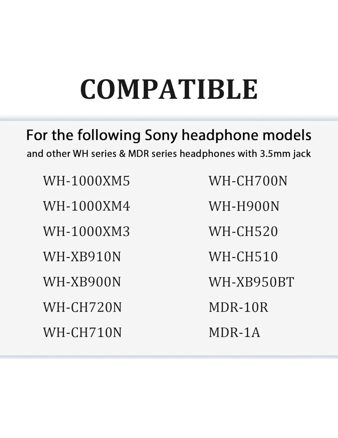- Compatible ampliamente: Este cable de audio auxiliar para auriculares es compatible con Sony WH-1000XM5, WH-1000XM4, WH-1000XM3, WH-XB910N, WH-XB900N, WH-CH720N, WH-CH710N, WH-CH700N, WH-H900N, WH-CH520, WH-CH510, MDR-XB950BT(XB950B1, XB950N1), MDR-10R(10RNC, 10RBT), MDR-1A y otros auriculares de la serie WH y la serie MDR con conector de 3.5mm. Asegúrate de que tu dispositivo soporte conector de 3.5mm.