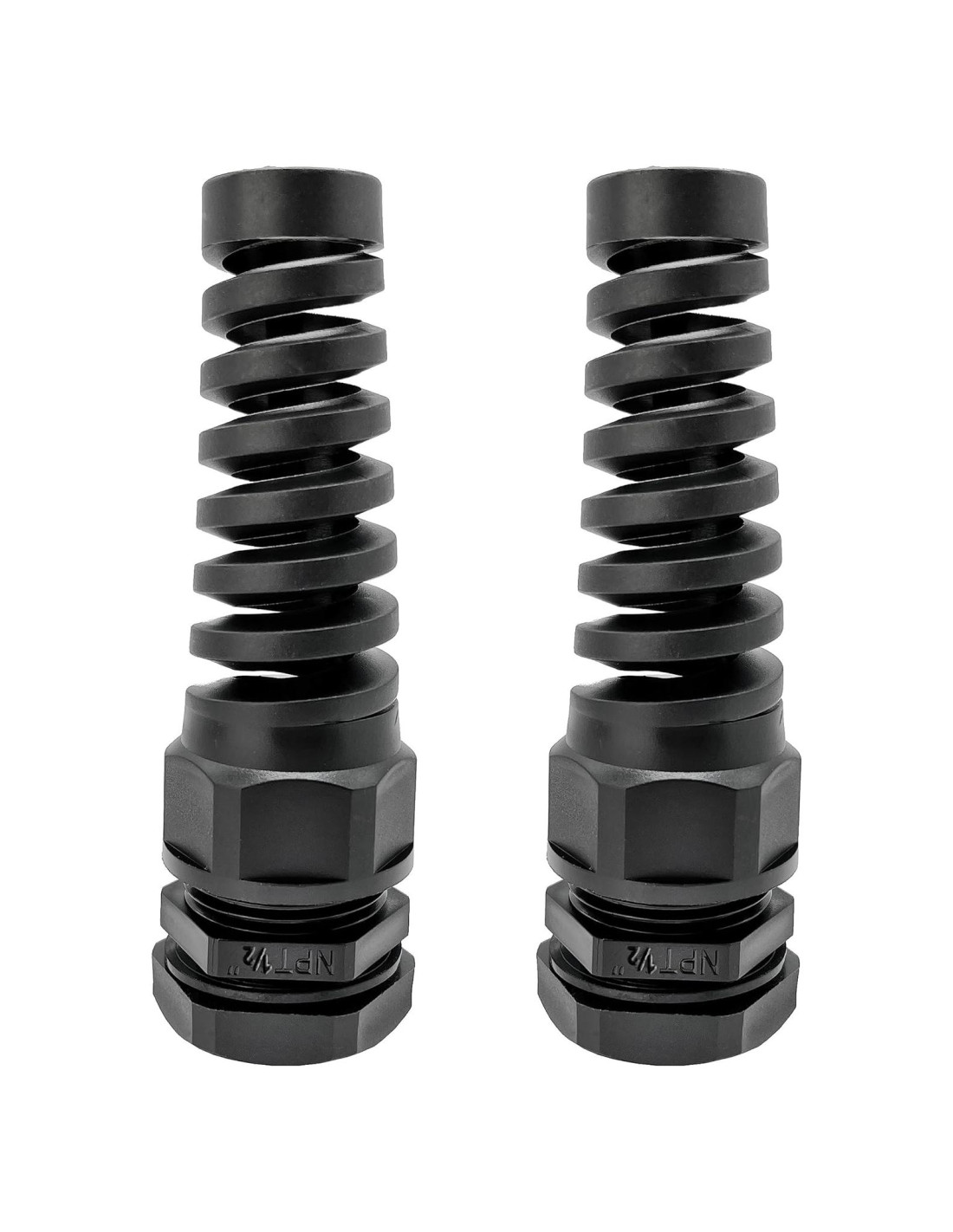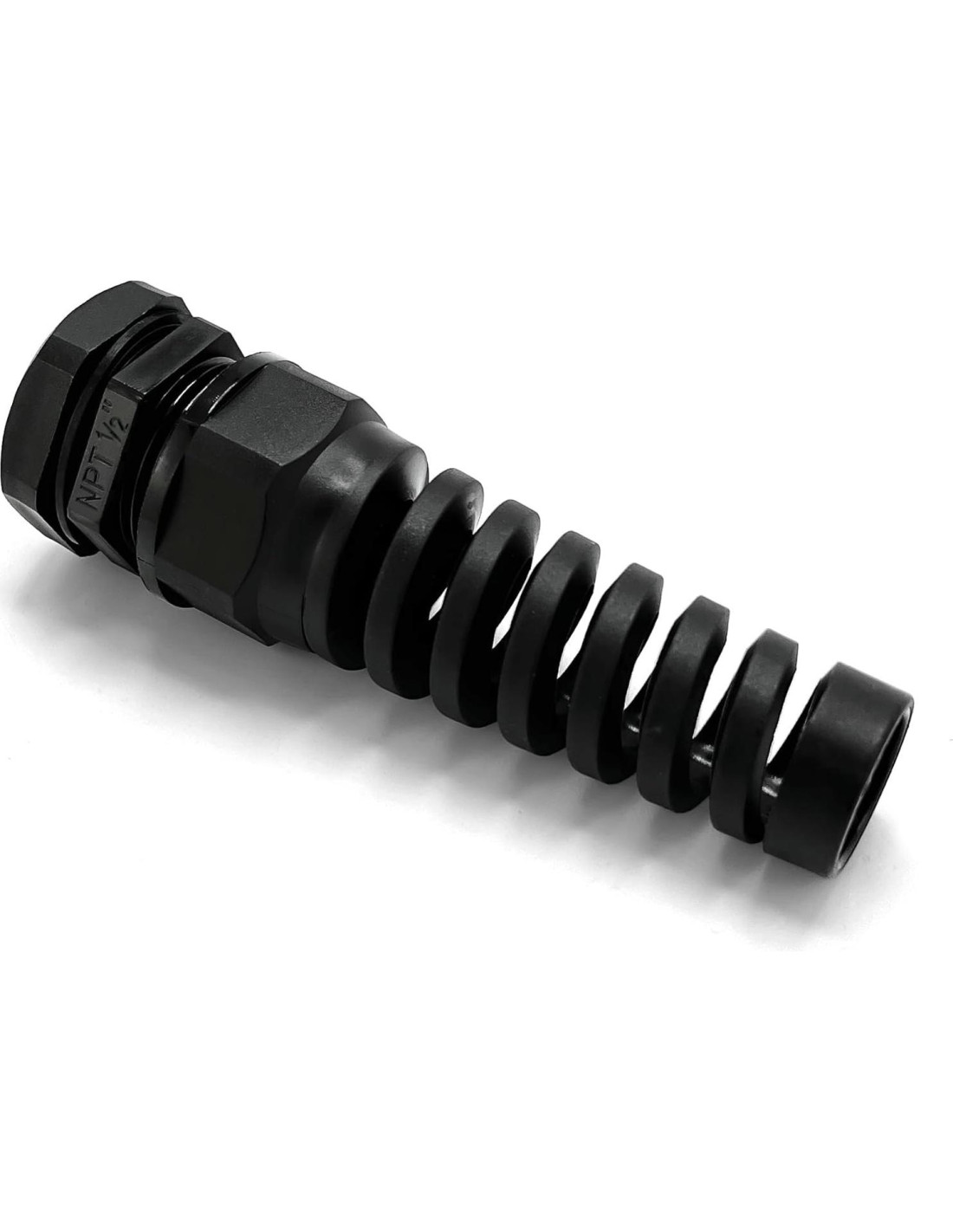 Perfecto para un alivio de tensión de cable resistente al agua. Atorníllese directamente en los agujeros de enchufe de cajas eléctricas estándar americanas, brindando un recinto clasificado IP66. NPT significa National Pipe Thread, que es un estándar estadounidense para hilos cónicos que tienen un ángulo de hilo de 60 grados con un ángulo de conicidad de 1.79 grados. Tenga en cuenta que el hilo NPT no es compatible con hilos métricos o PG. Clasificación de inflamabilidad UL94V-2 con temperaturas de trabajo estáticas de -40 a 212F (-40 a 100C). Ideal para uso tanto en interiores como en exteriores, incluidos proyectos industriales, automotrices y electrónicos. Proporciona alivio de tensión a prueba de agua, estabilidad y protección de bordes a un cable o grupo de cables que pasan a través de un corte o agujero en un panel. El diseño de cola en espiral protege sus cables de daños en giros agudos, extendiendo la vida de sus cables. Tuerca en forma de domo con ranuras de agarre que facilita el apriete a mano o con una llave.