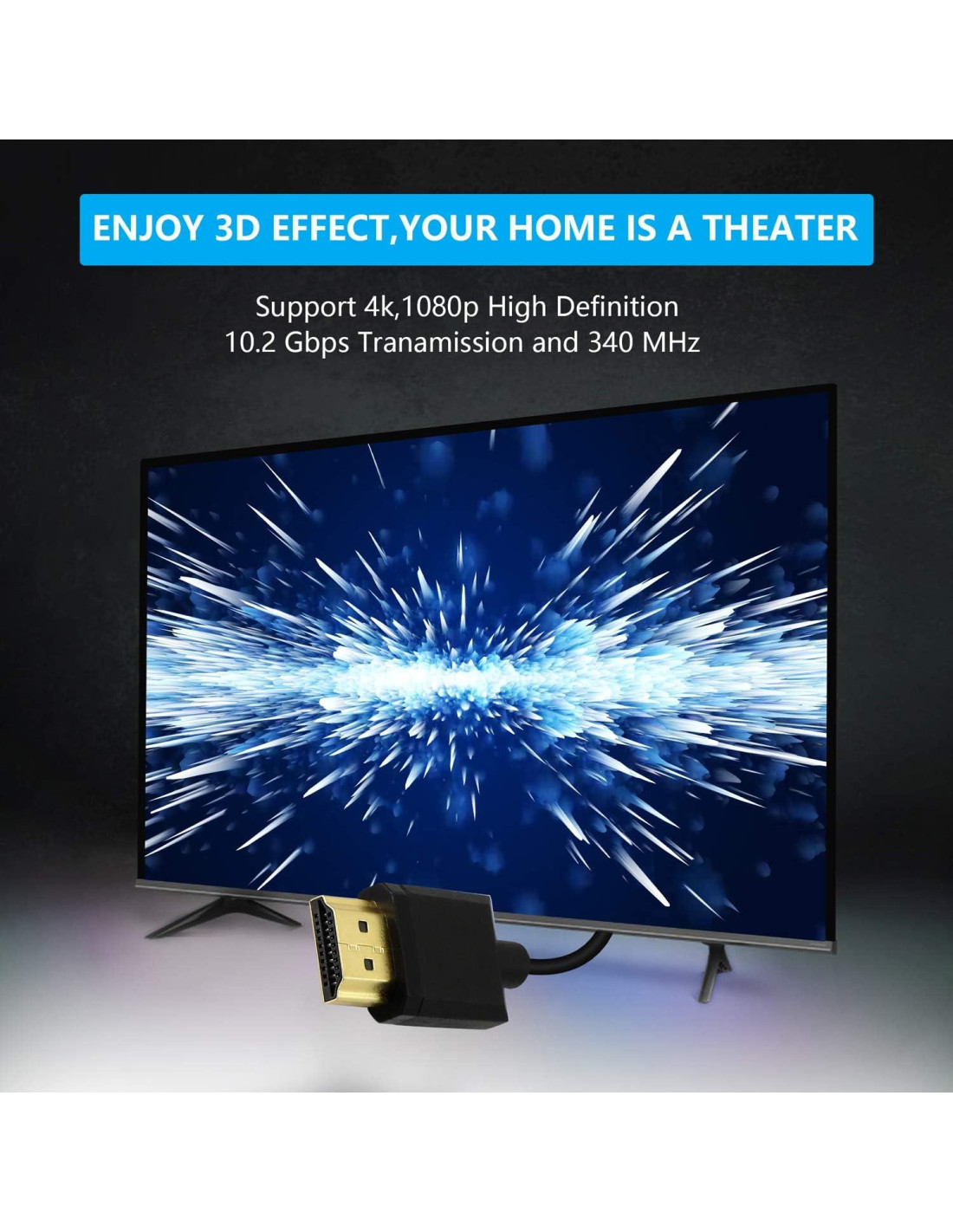 - [Cable HDMI de Ángulo Recto] El diseño de ángulo recto hace que el cable se ajuste mejor a los dispositivos montados en la pared, resolviendo la incomodidad de los espacios limitados entre la pared y el dispositivo, te brinda la flexibilidad que necesitas, puede proteger eficazmente el dispositivo de daños por múltiples conexiones y desconexiones y extender la vida útil del dispositivo y del cable HDMI.