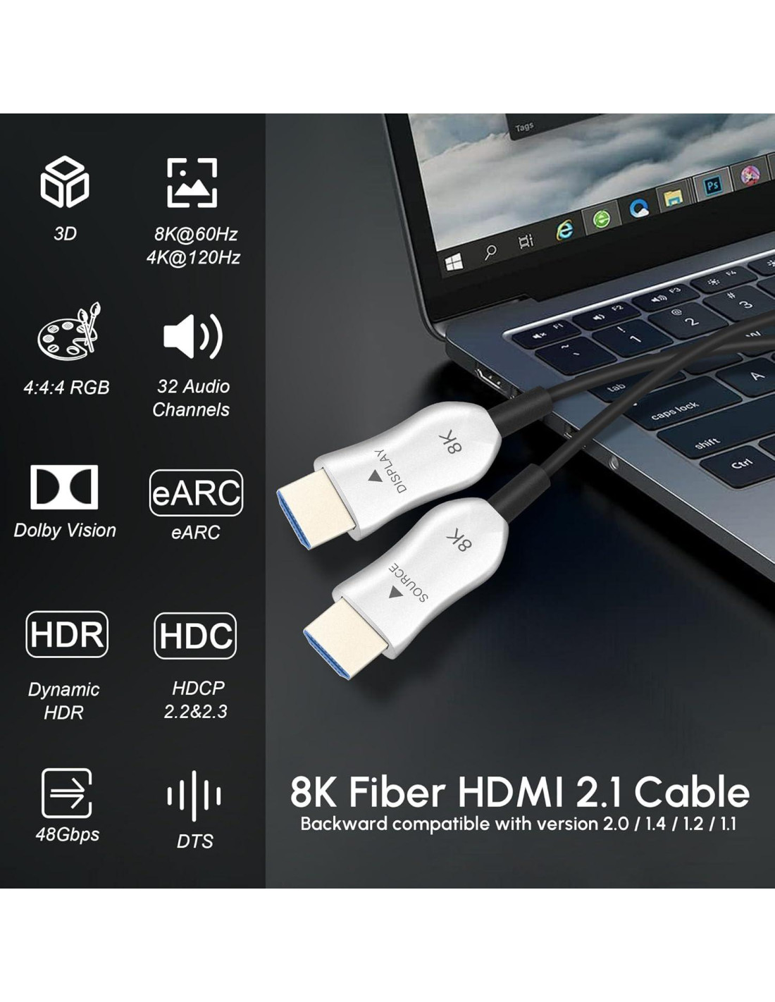 - Transmisión de señal a larga distancia sin pérdida -- El cable HDMI 2.1 de fibra óptica puede lograr transmisión sin pérdida, con una distancia de transmisión de hasta 300m. El cable HDMI de cobre no puede alcanzar 18Gbps por más de 15 metros, mientras que los cables HDMI de fibra pueden alcanzar y sin pérdida de señal.