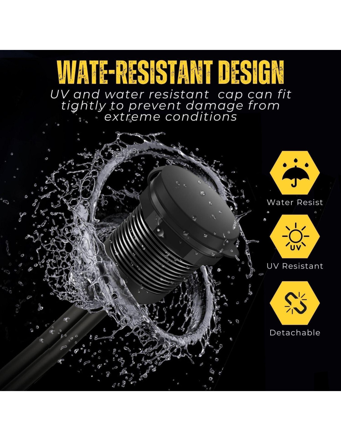 - Resistente al Agua y a los Rayos UV - El conector del cable de montaje es resistente a los rayos UV y la tapa de plástico de goma rígida puede ajustarse firmemente para prevenir daños por condiciones climáticas extremas; Capaz de funcionar en un ambiente húmedo siempre que los conectores eléctricos se mantengan secos; La tapa es desmontable