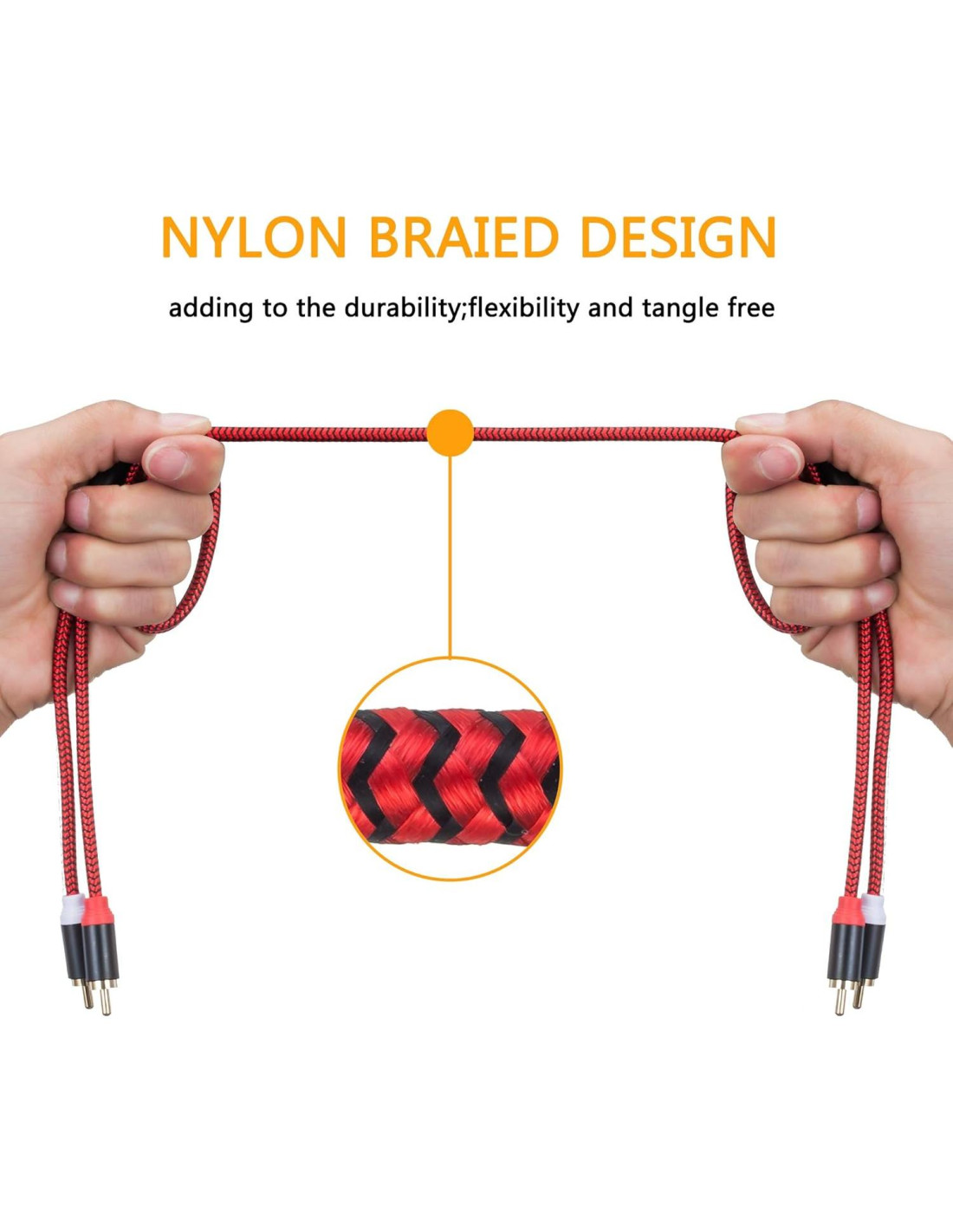 Dispositivos Compatibles: Los puertos RCA son compatibles con varios tipos de reproductores estéreo (dispositivos con RCA hembra roja y blanca). -TV, DVD, Amplificador, Caja de sonido, Coche, etc. Por favor, notas: 1. Conectores marcados en rojo/blanco para conexiones rápidas y fáciles de izquierda a derecha. 2. Por favor, preste atención a que nuestros cables solo se pueden usar para transmitir señales de audio, no para la transmisión de señales de video. 3. Asegúrese de la compatibilidad y el correcto funcionamiento de todo el equipo conectado antes de que el cable se instale permanentemente dentro de un accesorio permanente. Conectar y Usar: No se requieren software ni controladores, solo disfrute de la alta calidad estéreo conectando simplemente dos dispositivos con este cable de audio estéreo 2RCA macho a 2RCA macho. Calidad de Sonido Premium Rendimiento Estéreo Hi-Fi La carcasa de metal de este cable RCA estéreo proporciona un rendimiento confiable y reduce la pérdida de señal. Los cables de cobre libre de oxígeno esmaltados transmiten sin problemas audio estéreo para sonidos de alta calidad. Conector Baño de Oro de 24K El cable de audio estéreo 2RCA macho a 2RCA macho transmite audio en formato estéreo. Contactos bañados en oro de 24K que le brindan la flexibilidad que necesita para su placer auditivo. Rendimiento Duradero Diseño Cable Estéreo RCA Agrega fibra militar resistente, el material más flexible, potente y duradero, aumenta la fuerza de tracción en un 200%, diseño especial de soporte de alivio de tensión, puede soportar más de 10000 pruebas de flexión. Lo que obtienes: 1 X Cable de audio 2RCA a 2RCA trenzado de nylon.