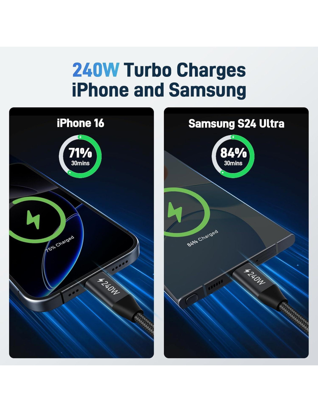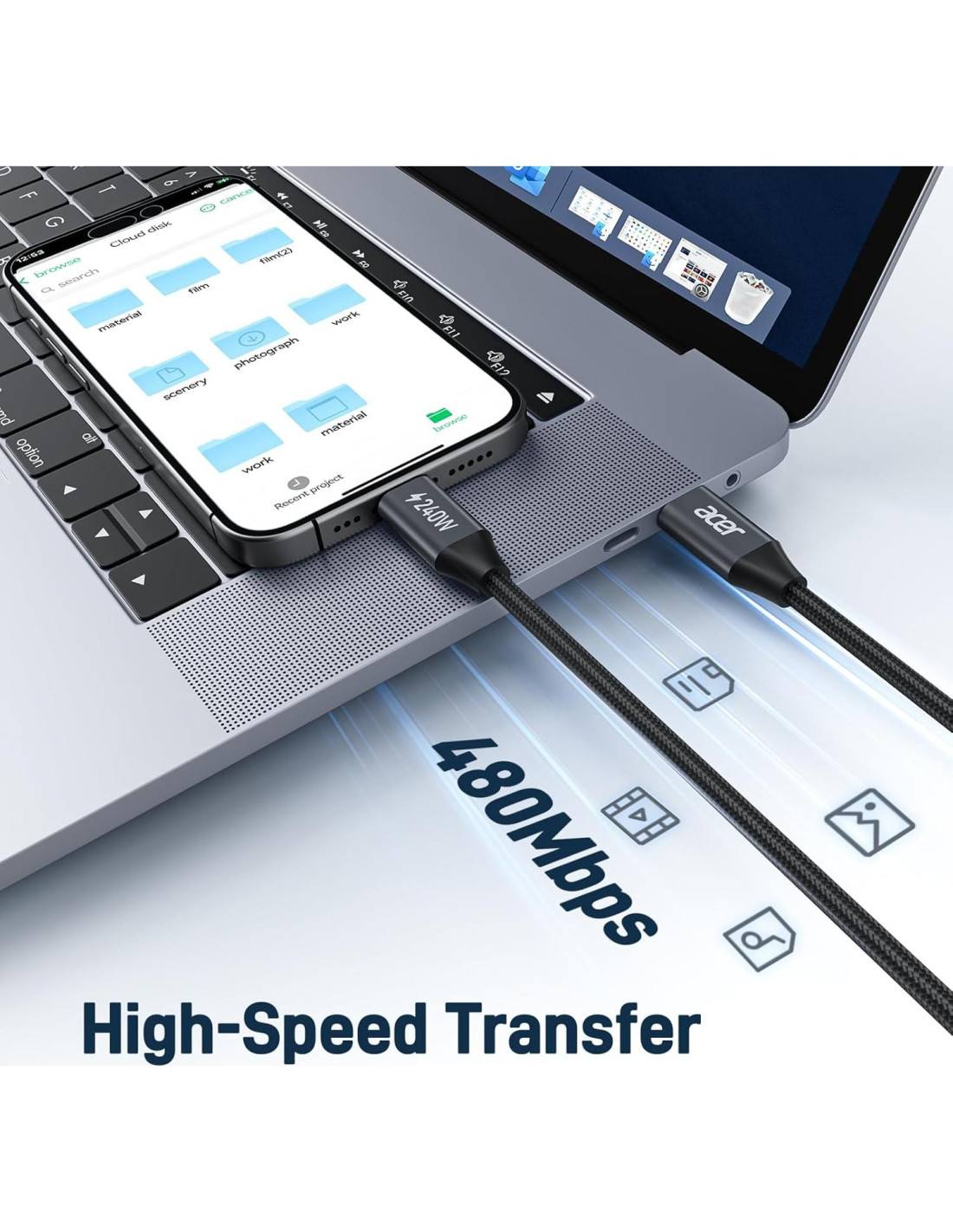 - [Carga Súper Rápida de 240W] El cable usb c de Acer soporta carga rápida PD3.1 y QC4.0 con una salida máxima de 240W, que puede cargar el iPhone 16 del 0% al 71% en 30 minutos. No más tiempo perdido en la carga. NOTA: La potencia de carga real depende de tu dispositivo y cargador.