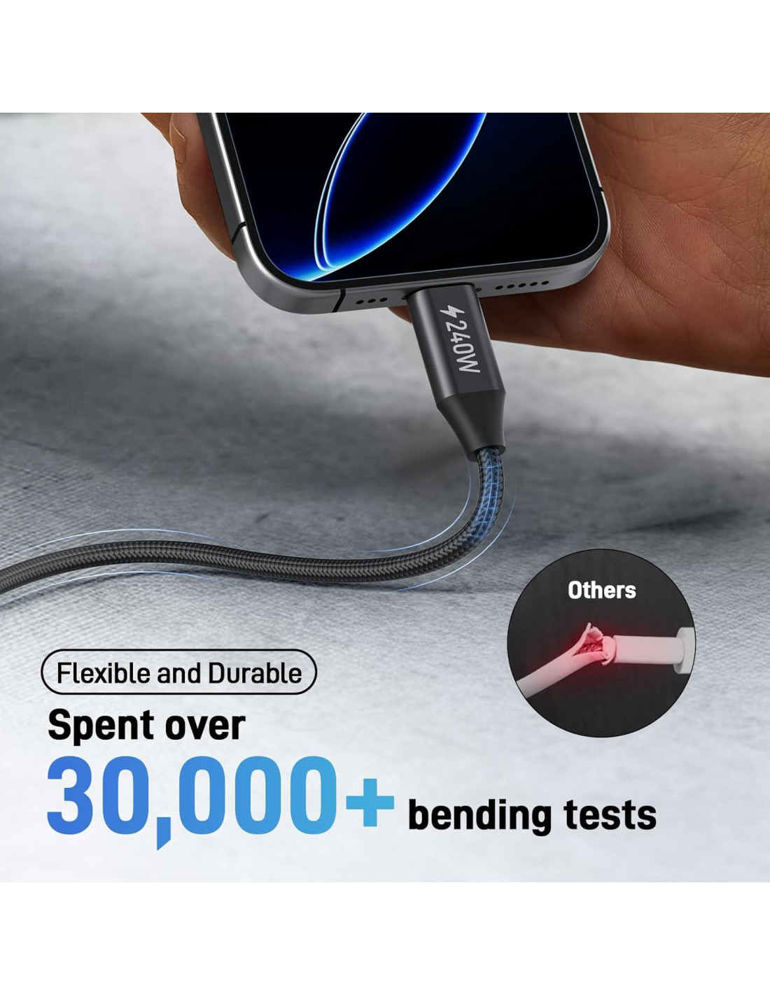 - [Diseño Duradero y Elegante] Nuestro cable de carga rápida trenzado de nylon con juntas reforzadas proporciona un rendimiento duradero y sin enredos. El diseño de alivio de tensión y el escudo de aluminio sólido hacen que el cable sea duradero y confiable. Perfecto para uso diario y carga pesada.