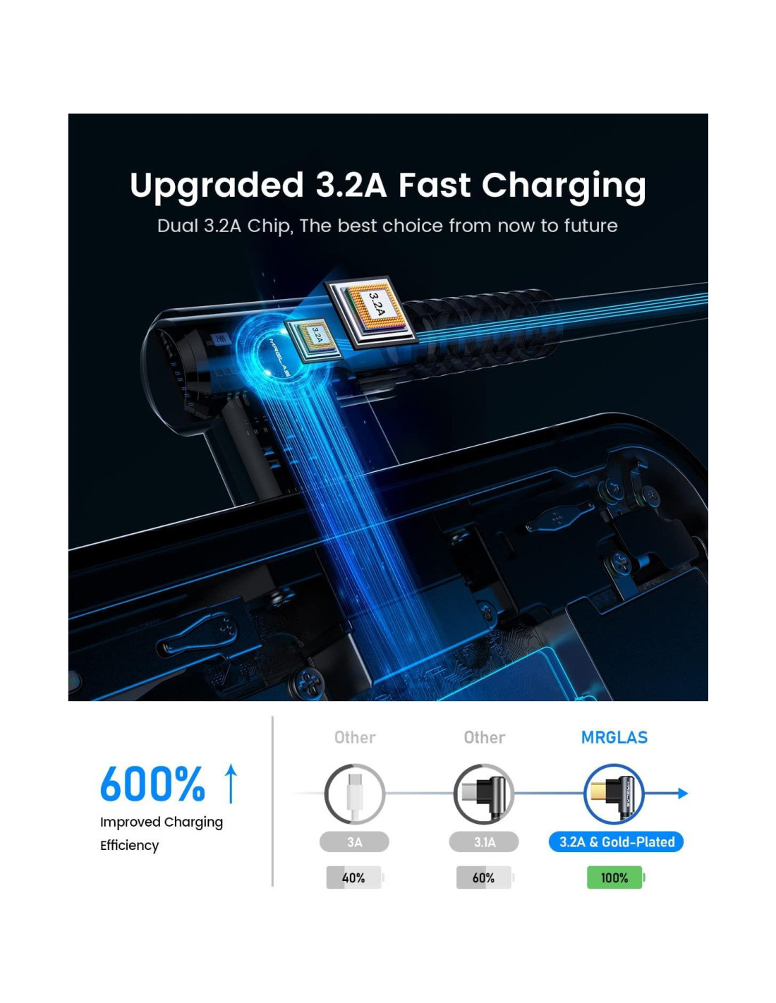 MRGLAS [2-pack, 1.0m+1.0m] cable usb c 3.2a ángulo derecho & chapado en oro, se puede usar con funda de teléfono Otterbox.