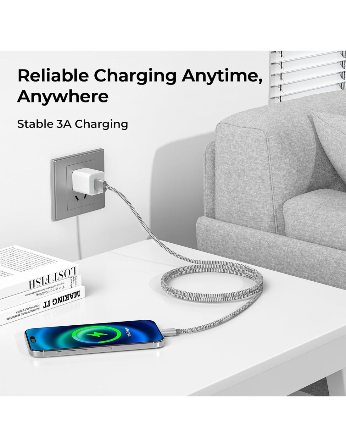 - DISEÑO AMIGABLE PARA EL USUARIO --- Viene con una correa de Velcro flexible adicional para ayudarte a mantener cualquier exceso de cable fuera del camino y evitar que este cable se enrede. La longitud perfecta del cable (6.6 FT) lo hace adecuado para ser usado en el sofá, la cama, la oficina o incluso en el asiento trasero de tu coche mientras tu dispositivo se está cargando.