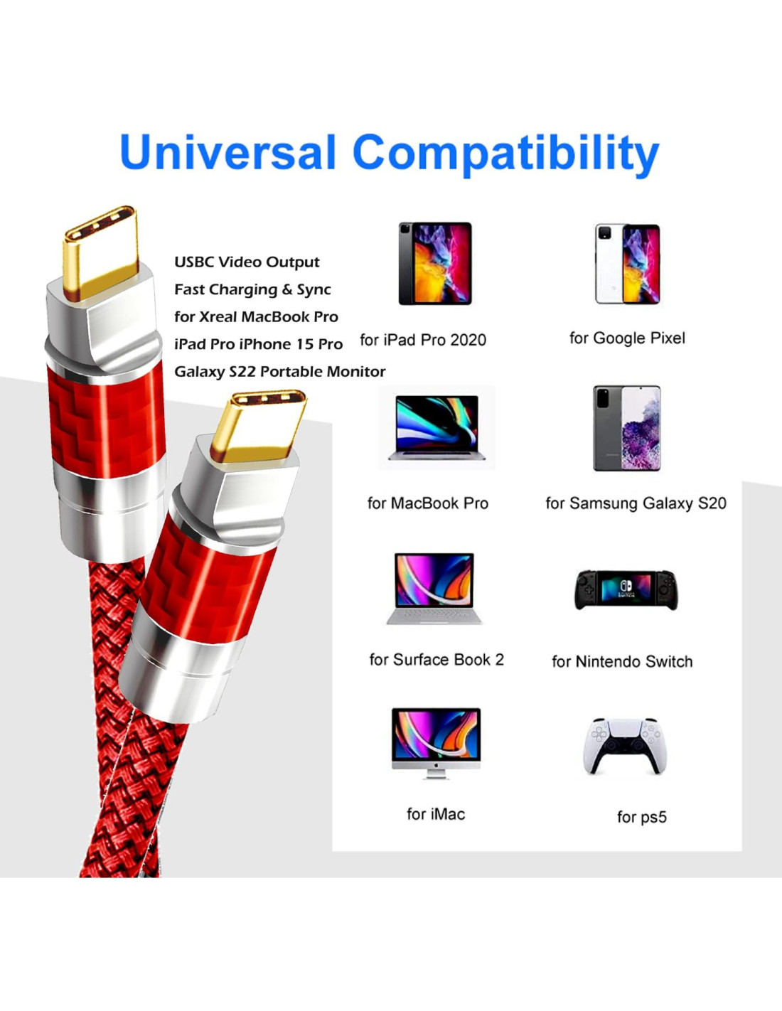 YOTETION CABLE DE MONITOR USB C 240W SALIDA DE VIDEO 4K@60Hz El cable de display USB C soporta resolución UHD. Nota: En cuanto a la función de video, asegúrate de que tu dispositivo tenga un puerto USB C que soporte el modo DP Alt de transferencia de datos de 40Gbps, 2x más rápido que 20Gbps. Carga PD de 240W, más rápida que 100W Amplia compatibilidad Los cables Tipo-C son compatibles con casi todos los dispositivos USB-C, incluyendo teléfonos, tabletas y laptops Compatible con iPhone 15/15 Pro/15 Plus/15 Pro Max, MacBook Pro Air iPad Pro/Mini/Air, Dell XPS/Inspiron/Latitude ThinkPad Samsung Galaxy Tab S8/S8 Plus, Samsung Galaxy S23/S22/S21, etc.