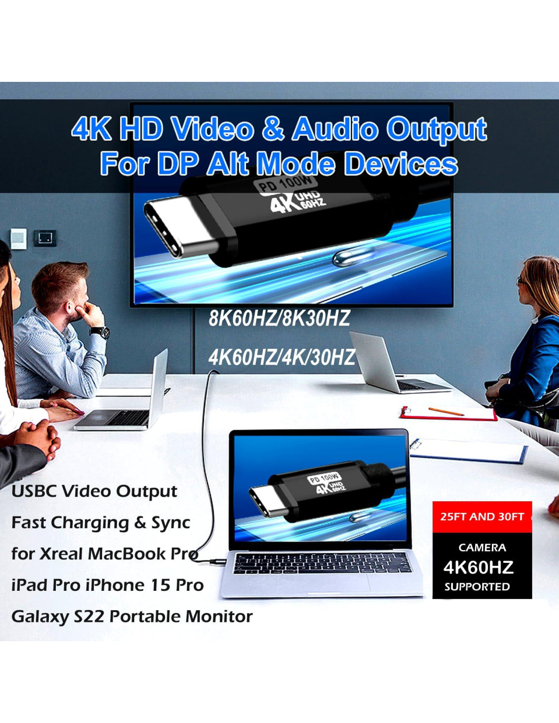 - Pantalla HD: Soporta características de modo alternativo DP de pantalla USB C a USB C, incluyendo 8K@60Hz y dual-4K@60Hz de ultra alta resolución y video de alta tasa de refresco. Conecta un dispositivo USB-C a una pantalla o estación de acoplamiento USB-C para transferir energía y video desde tu computadora. Conectar y usar, no se requiere instalador.