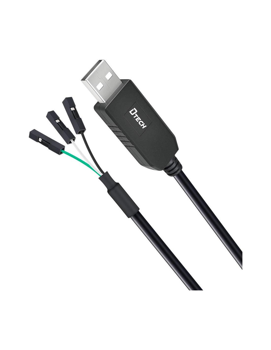 Adaptador serial USB TTL de 1.83 metros construido con chip FT232RL para comunicación serial de nivel lógico de 3.3V (rx, tx y GND). Está construido con chip FT232r cuyo controlador VCP libre de regalías permite la comunicación como un puerto COM estándar y los controladores D2XX 'directos' proporcionan una interfaz de programación de aplicaciones DLL; un gran cordón de conversión de datos para satisfacer sus necesidades de depuración, arranque, programación, etc. El chip FT232 original está incrustado en el extremo USB-A; conector de cabecera de 3 vías de 0.1" con GND (tierra), RX y TX a nivel lógico de 3V3. Aplicaciones: Actualización de periféricos heredados a interfaz USB, UART o I/O de microcontrolador, FPGA/PLD a USB, como dispositivo de conmutación en el control de lámparas y relés, reemplazo de convertidores de nivel tipo MAX232 que permiten la conexión directa de productos a PC. Usado en procesadores de mini computadoras como DEC VAX, Control Industrial, Software USB, Dongle de Encriptación de Hardware, impresora, terminales de visualización de video, osciloscopio, dispositivo de medición, microprocesador, control remoto de luz, etc. Los pines I/O del cable USB a uart están configurados para operar a nivel lógico de 5.0v - Todo el protocolo USB es manejado por la electrónica en el cable; soporte de interfaz UART para 7 u 8 bits de datos, 1 o 2 bits de parada y impar/par/marca/espacio/sin paridad; tasas de transferencia de datos de 300 a 3M baudios a niveles TTL; EEPROM interna con área escribible por usuarios; La tensión de suministro proviene del bus USB, no se requiere suministro externo; Compatible con controladores host UHCI/OHCI/EHCI. Interfaces: Puerto USB 2.0 tipo A macho; Conector hembra de 3 pines con cables voladores. Soporta Windows 2008, XP, Vista, CE 4.2, 5.0 y 6.0, Windows 11, 7, 8, 8.1, 10; Mac, Linux. NOTA: Si tiene problemas de instalación o uso, envíenos un correo electrónico o puede descargar un controlador y guía de uso en el sitio web oficial del chip FT232. Qué incluye: 1x Cable Convertidor de Nivel TTL Serial USB a Tipo A macho de 1.83m, 1x Manual.