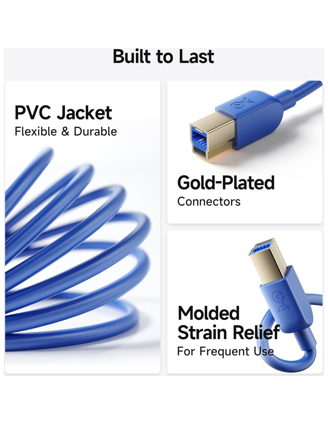 - Rendimiento y Fiabilidad Superior: Con conectores chapados en oro, conductores de cobre desnudo y blindaje de lámina y trenzado, este cable USB Tipo B 3.0 asegura un rendimiento óptimo, transmisión de datos sin errores y velocidades de carga rápidas.