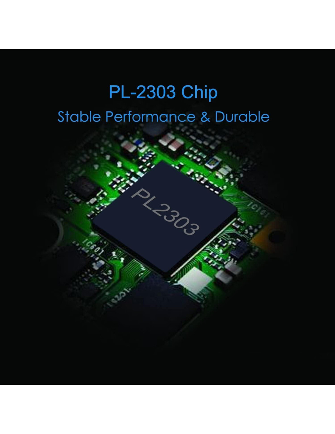 - Último chipset Prolific PL2303. soporta Windows 11/10/8.1/8/7/Linux/Mac OS; NOTA: Los controladores se pueden descargar en el sitio web de Cablecreation