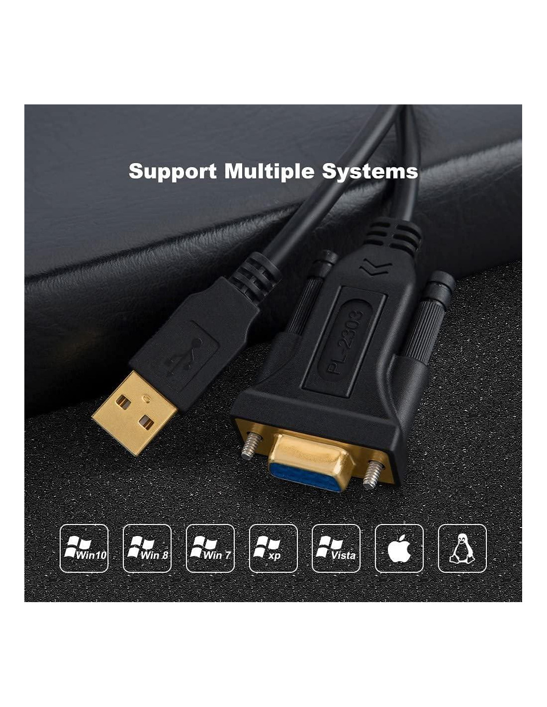 - CableCreation ofrece una garantía de producto de 24 meses y un servicio al cliente fácil de alcanzar de por vida. Este Adaptador USB a RS232 es un cable convertidor serial USB 2.0 macho a RS232 hembra DB9, adecuado para clientes con requisitos de cabeza hembra RS232 con la misma definición de pines. Si tienes algún problema con este artículo, no dudes en contactarnos