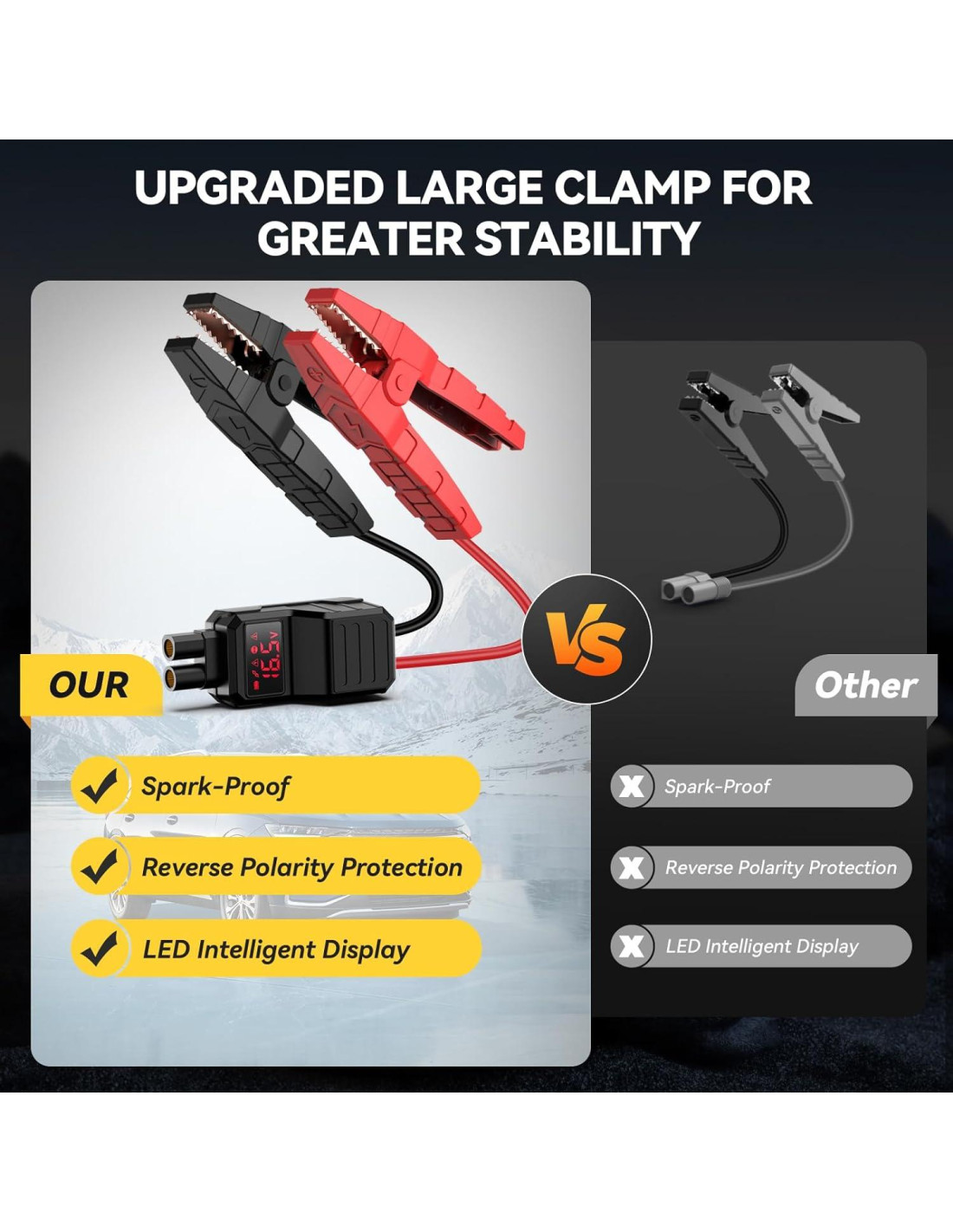 - PROTECCIÓN DE SEGURIDAD INTELIGENTE Y PANTALLA LCD: El arrancador de batería funciona con pinzas de arranque inteligentes que proporcionan múltiples protecciones de seguridad para garantizar que sea seguro de usar. La pantalla LCD del arrancador de coche muestra datos importantes como el nivel de batería, estado de carga y temperatura de la batería, haciendo que el arrancador sea más fácil y claro de usar.