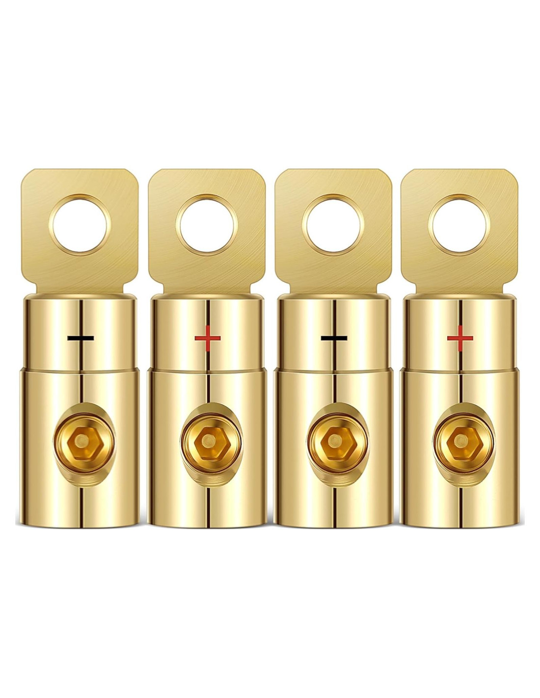 - Marcas de Color: estos terminales 0 AWG tienen marcas rojas y negras para ayudarle a distinguir entre conexiones positivas y negativas