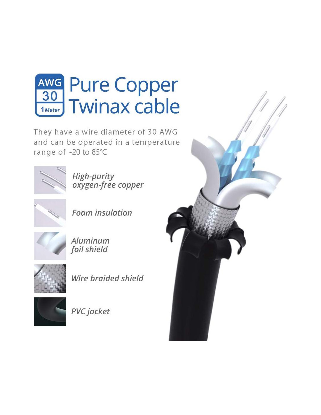 - Diseño eficiente: el cable DAC SFP+ 10Gb es una buena alternativa para enlazar puertos SFP+ de 10G, con bajo costo, bajo consumo de energía y baja latencia; todos los productos han pasado pruebas de TDR y VNA en nuestro Laboratorio de Integridad de Señal