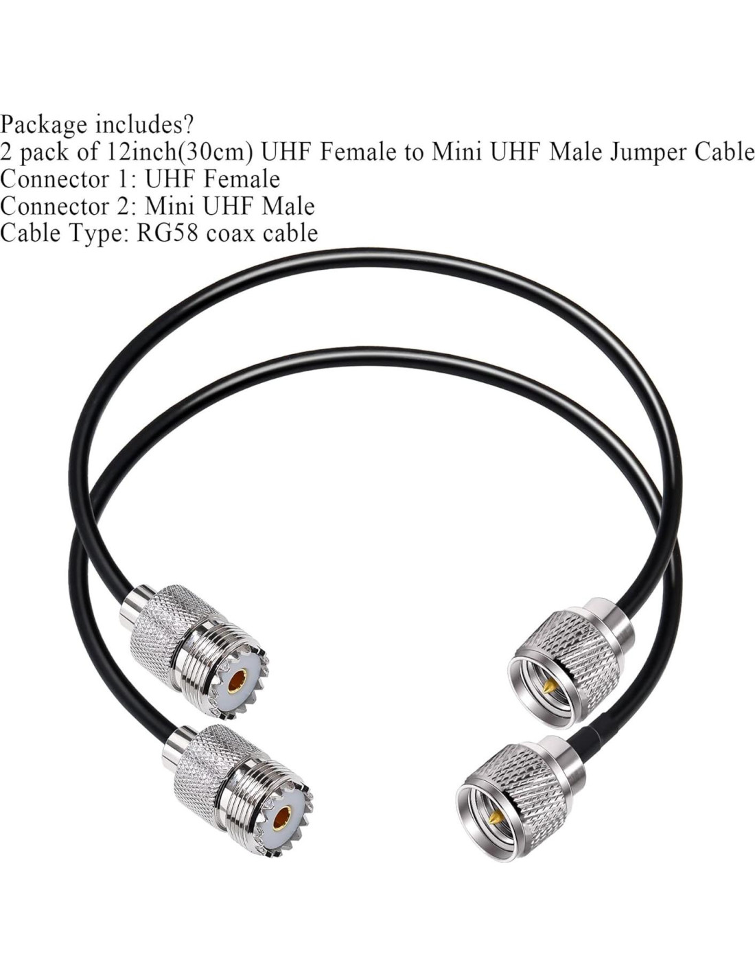 - Paquete Incluido: 1 pc de cable coaxial UHF Hembra a UHF Macho (Conector 1: UHF PL 259 Hembra, Conector 2: Mini UHF Macho)